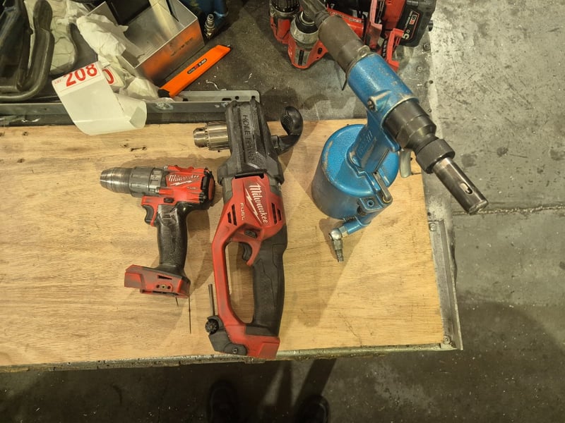 Power Tools Lot- Milwaukee Hole Hawg M18 CRAD2- Milwaukee M18 FPD2 Drill- Aircompressed Socket Driver, LH-224A