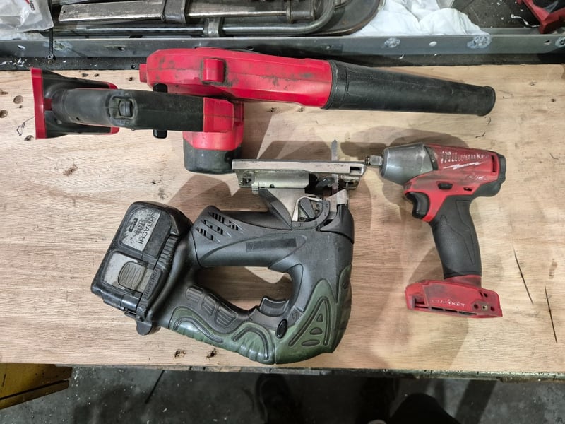 Power Tools Lot- Hitachi Jigsaw- Milwaukee M18 BBL, Blower- Milwaukee Impact Socket