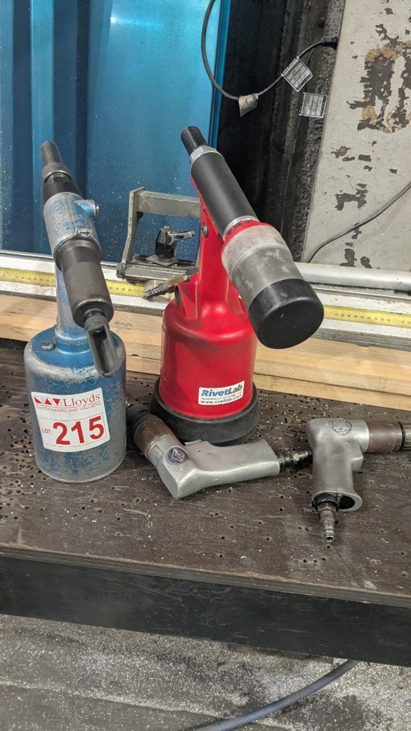 Assorted Pneumatic Hand Tools, Includes Drill and Rivet Guns SOLD AS LOT NOTE: INSPECTIONS HIGHLY RECOMMENDED