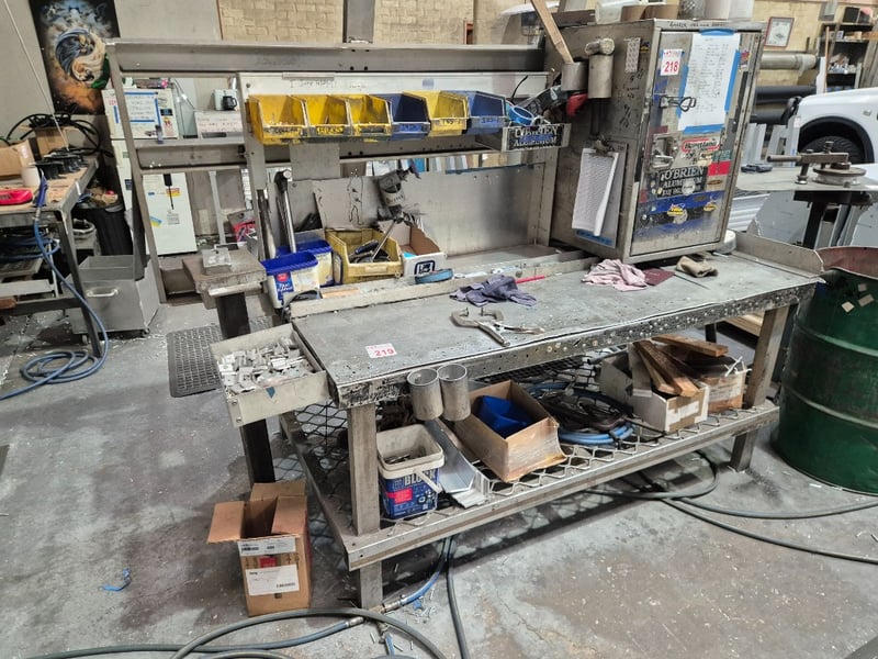Heavy Duty WorkbenchContents on Workbench IncludedNote: LOCKABLE BOX AND CONTENTS INSIDE NOT APART OF LOTSold as Lot MUST TAKE All