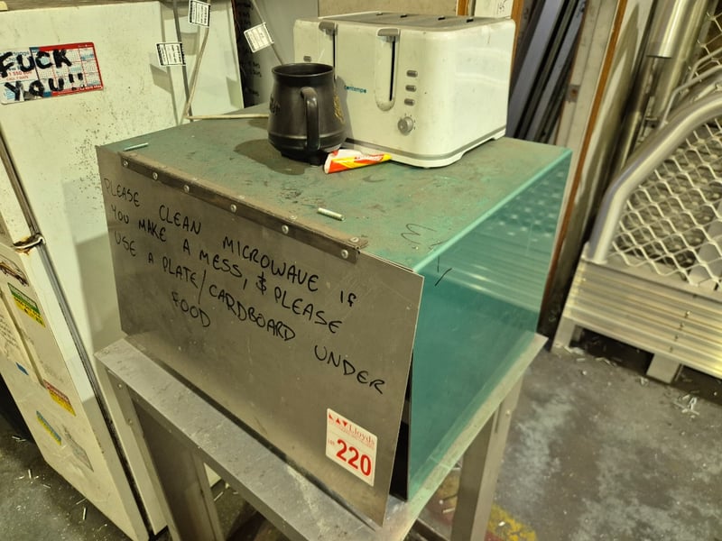 Small Metal Table, Box Of Assorted Sockets, Microwave, ToasterSold as Lot MUST TAKE All