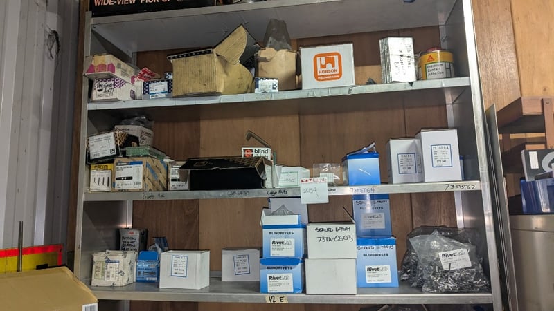 Assorted Hardware Items, Includes Metal Storage Shelf, Rivets, and more