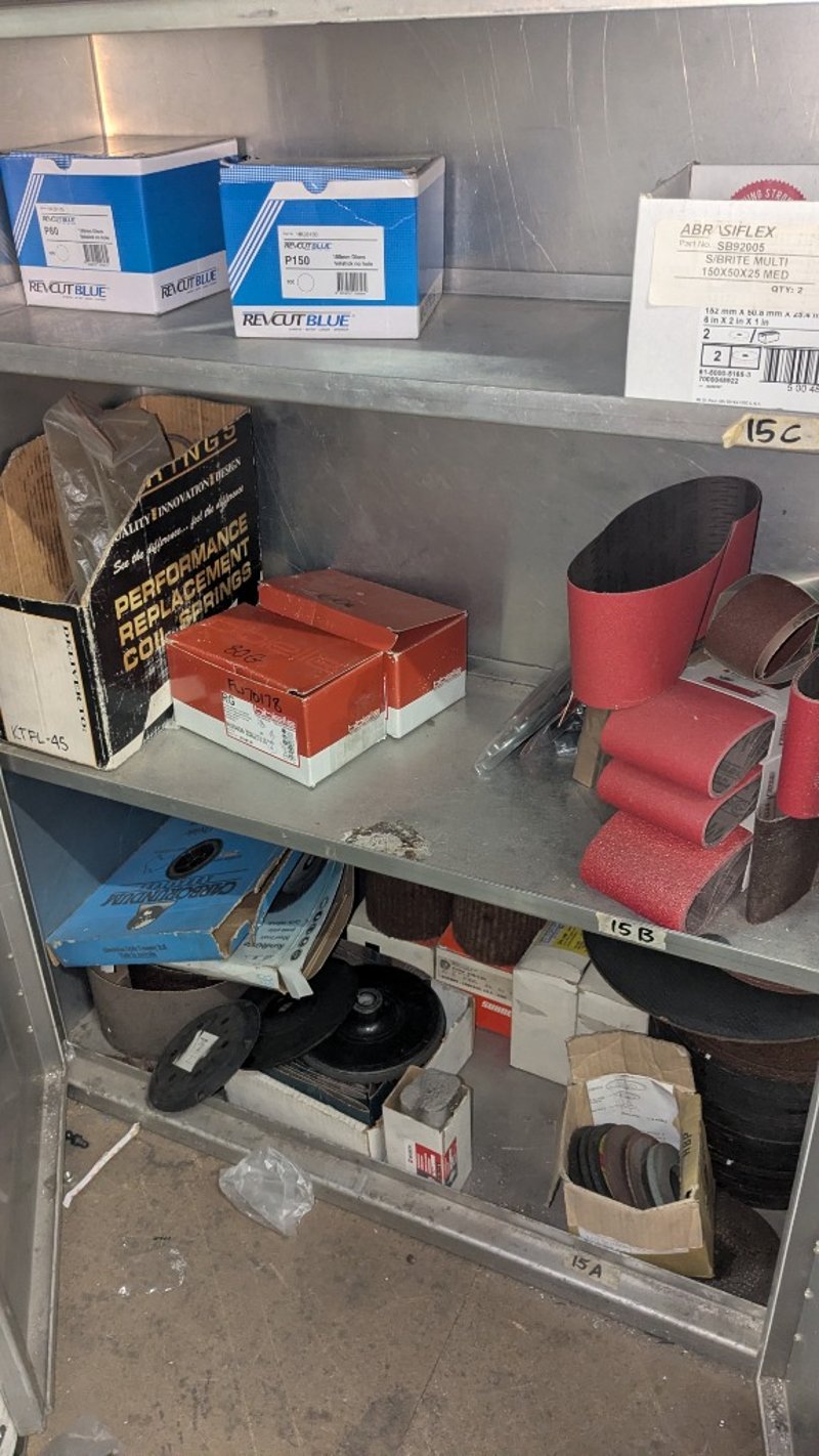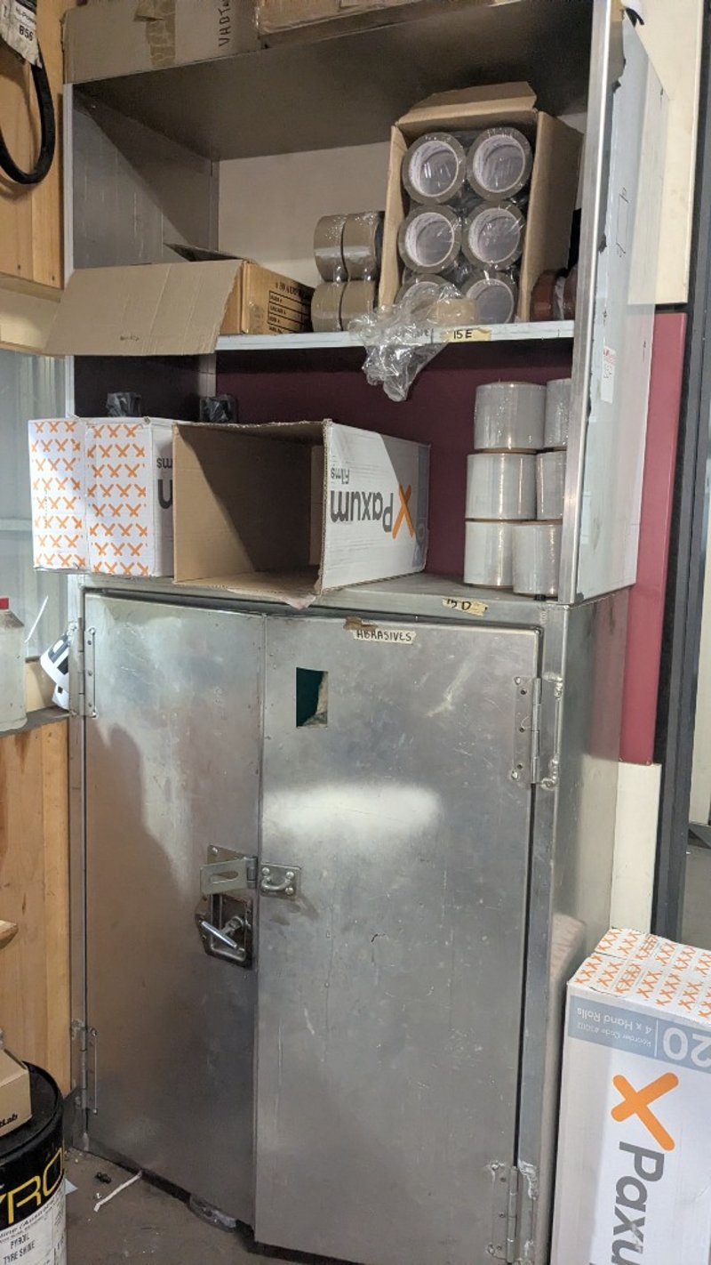 Metal Storage Cabinet, Lockable, Includes Tape, Sanding Discs and more