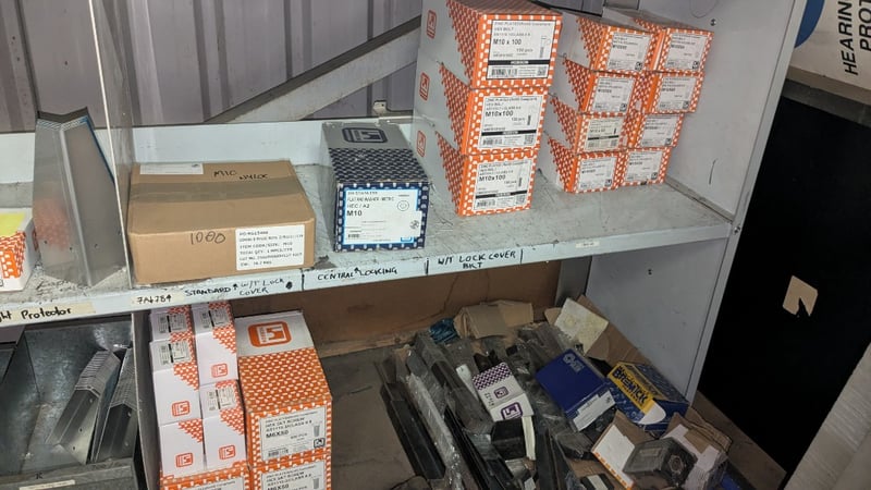 Assorted Metal Components, Includes Plate, M10 bolts, Washers and more SOLD AS LOT NOTE: UP ON MEZZANINE, INSPECTIONS HIGHLY RECOMMENDED, BUYER TO PROVIDE OWN LABOUR AND TOOLS FOR SAFE REMOVAL OF ASSET