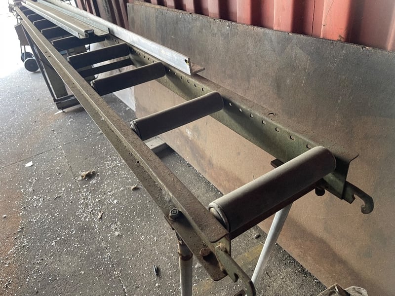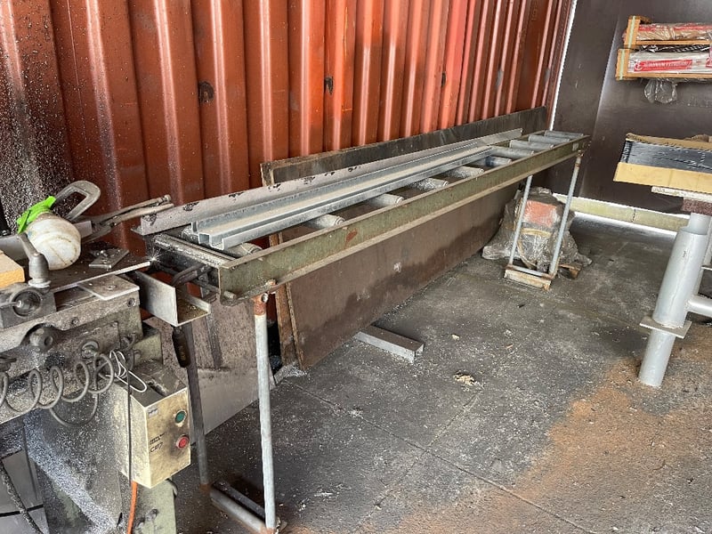 Production roller conveyor with metal saw. roller conveyor DIMENSIONS: 300 x 100 x 30 CMREFER TO PHOTOS