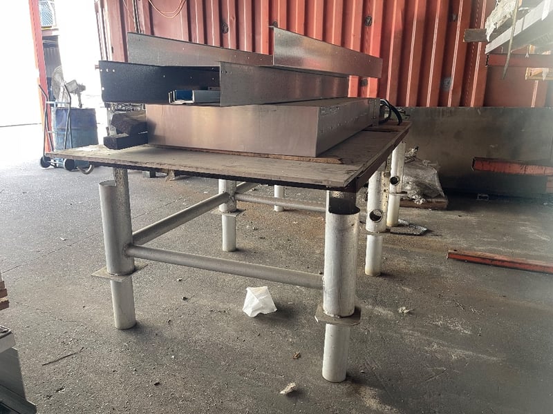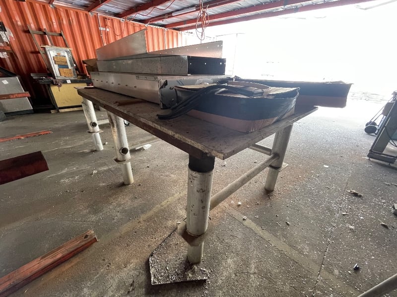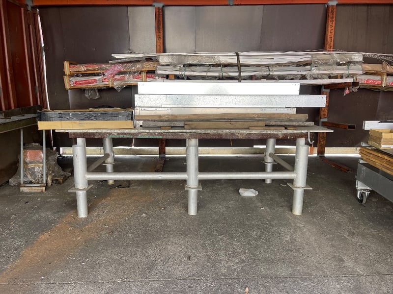 Metal steel Sturdy work shop table. (Objects on table included)TABLE DIMENSIONS: 120 x 90 x 260 CM