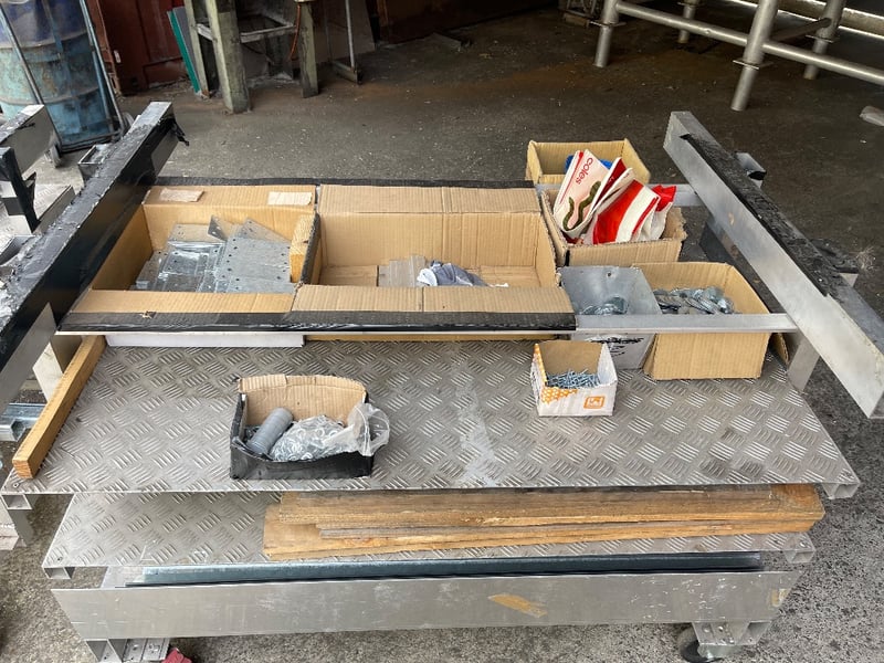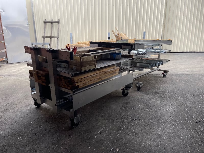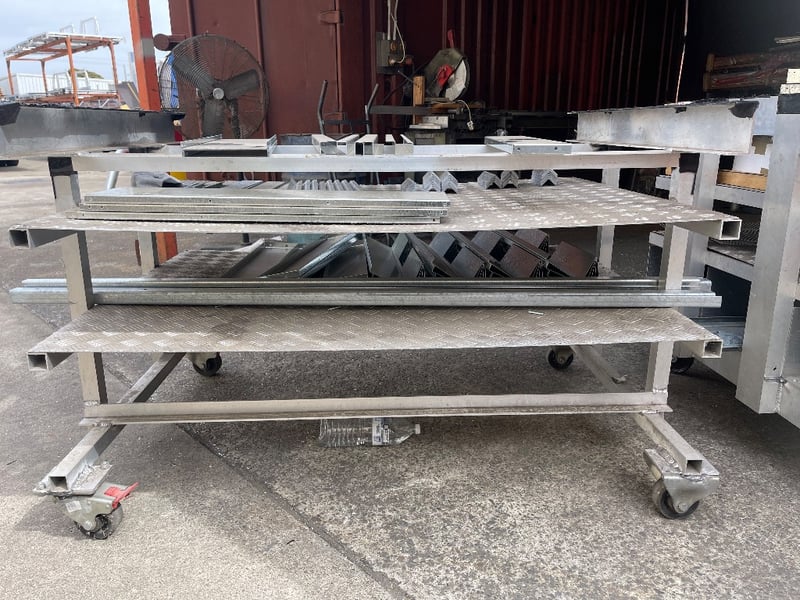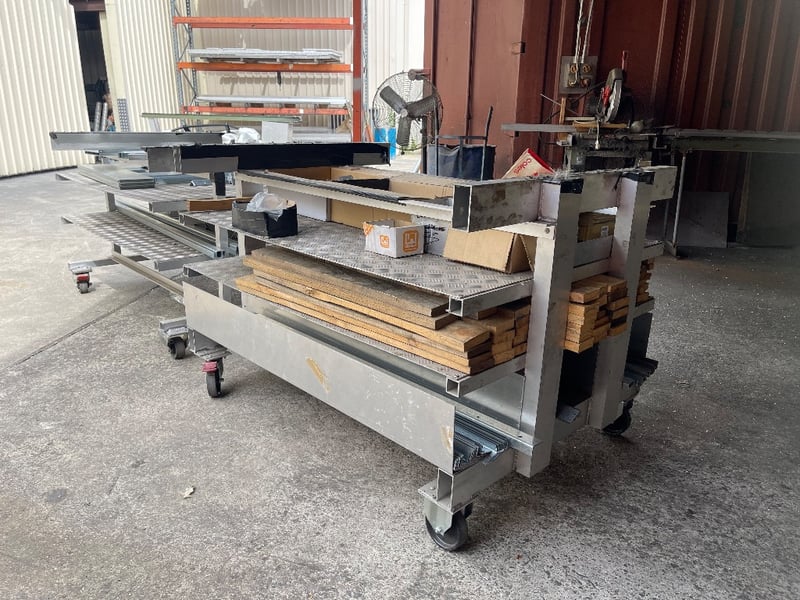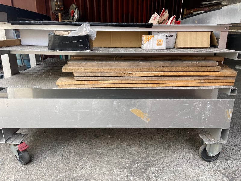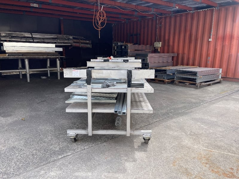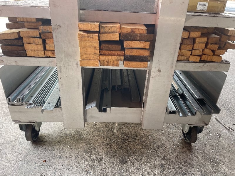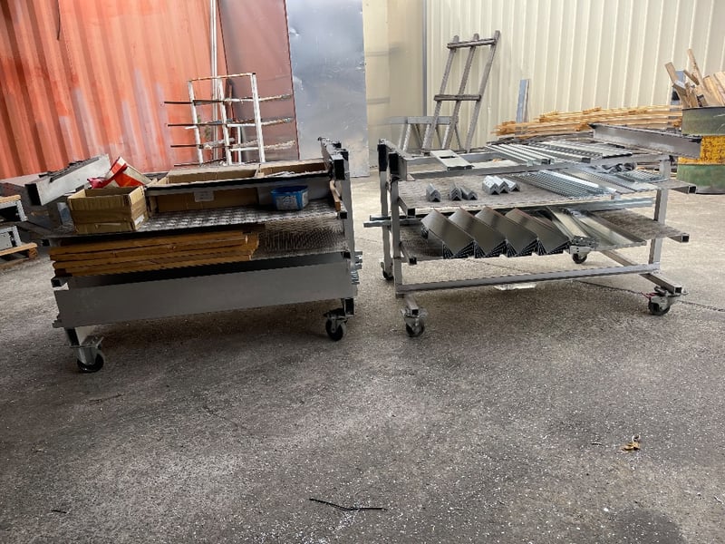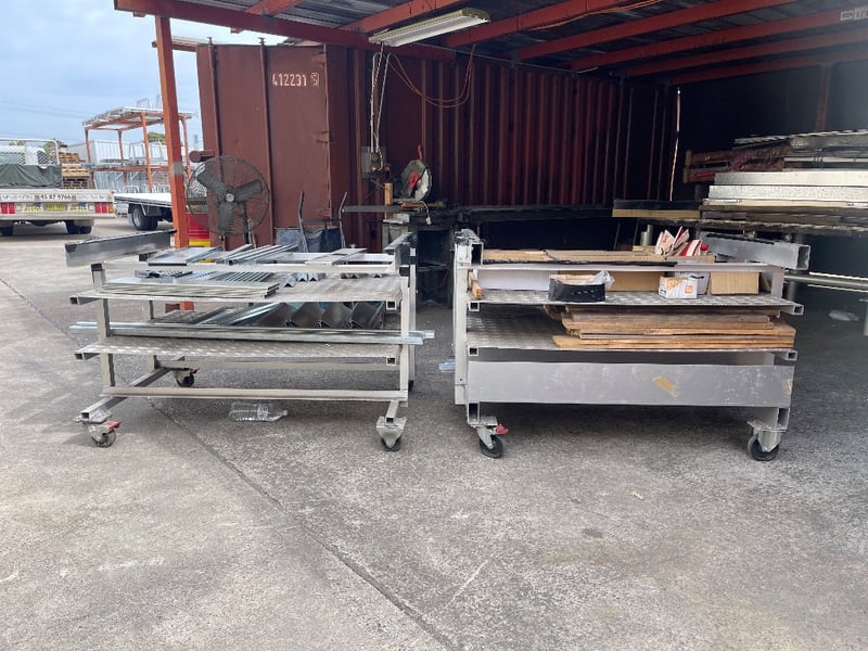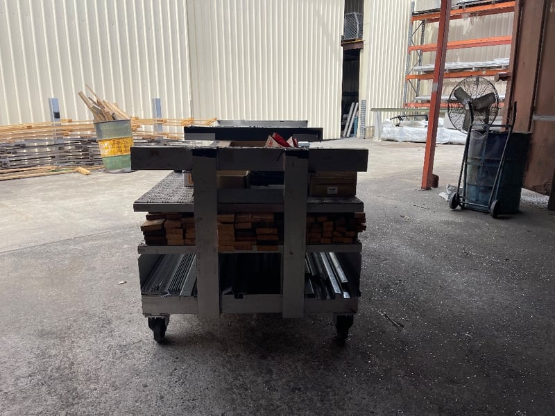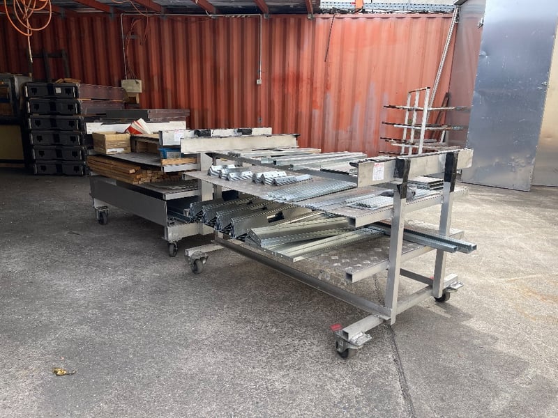 2x Storage material trolleys(Items included on trolleys) - steel pieces, timber, screws & many more..REFER TO PHOTOS sold as lot