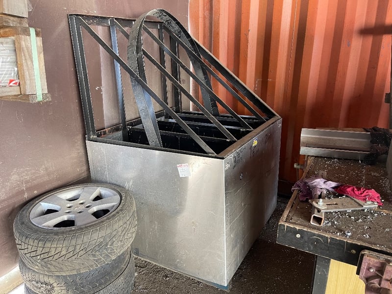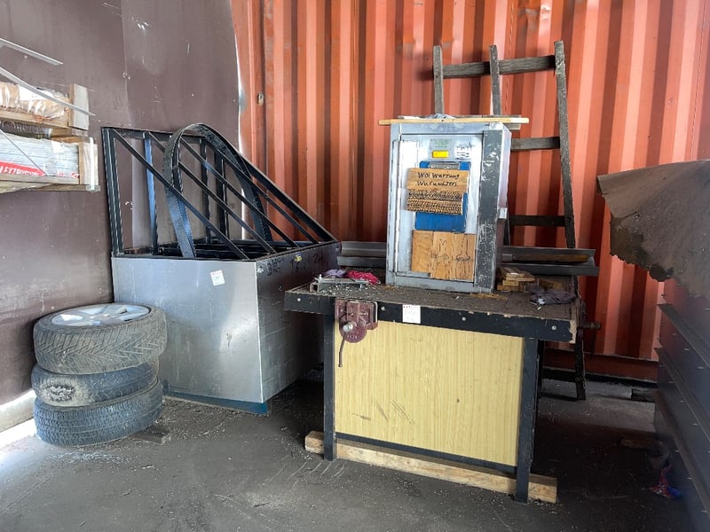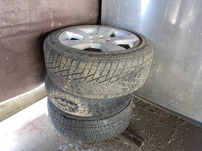 Assortment of workshop materials.Items include tyres, steel pieces, table & more…REFER TO PHOTOS