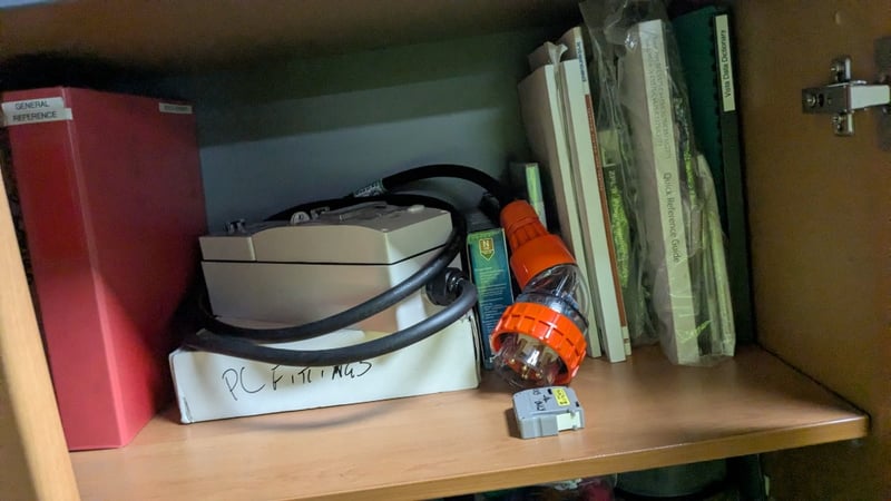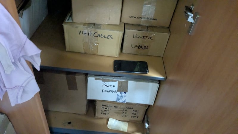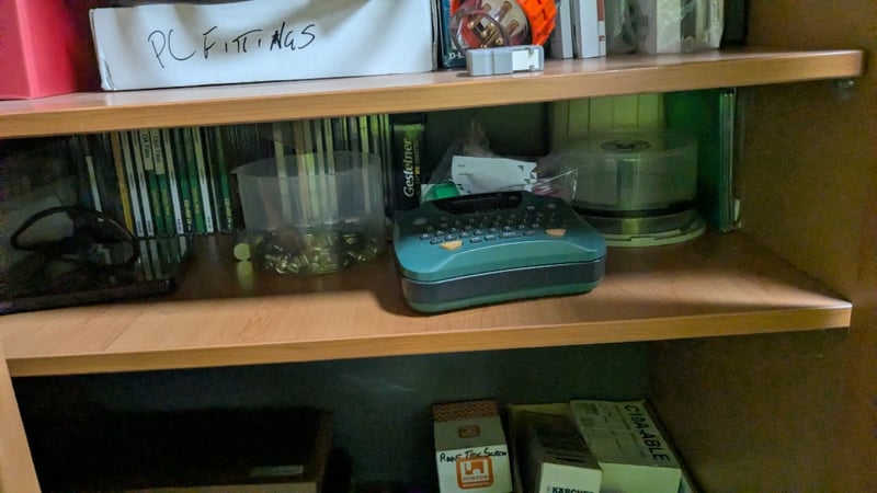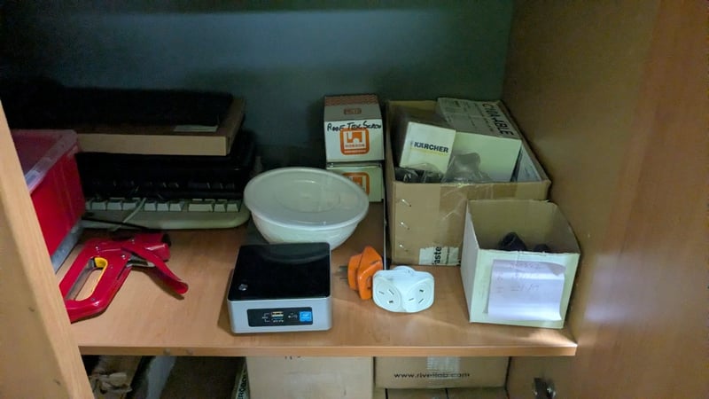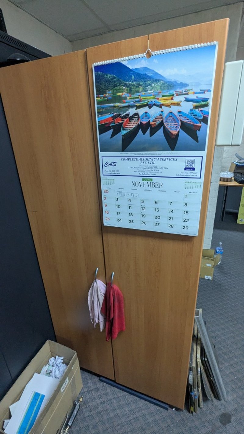 Office Storage Cabinet, Medium Stained Timber, 4 Tier, Includes Label Printer, Cables and more Dimensions: 900mm(W) x 470mm(D) x 1900mm(H) SOLD AS LOTNOTE: INSPECTIONS HIGHLY RECOMMENDED, BUYER TO PROVIDE OWN LABOUR AND TOOLS FOR SAFE REMOVAL OF ASSET