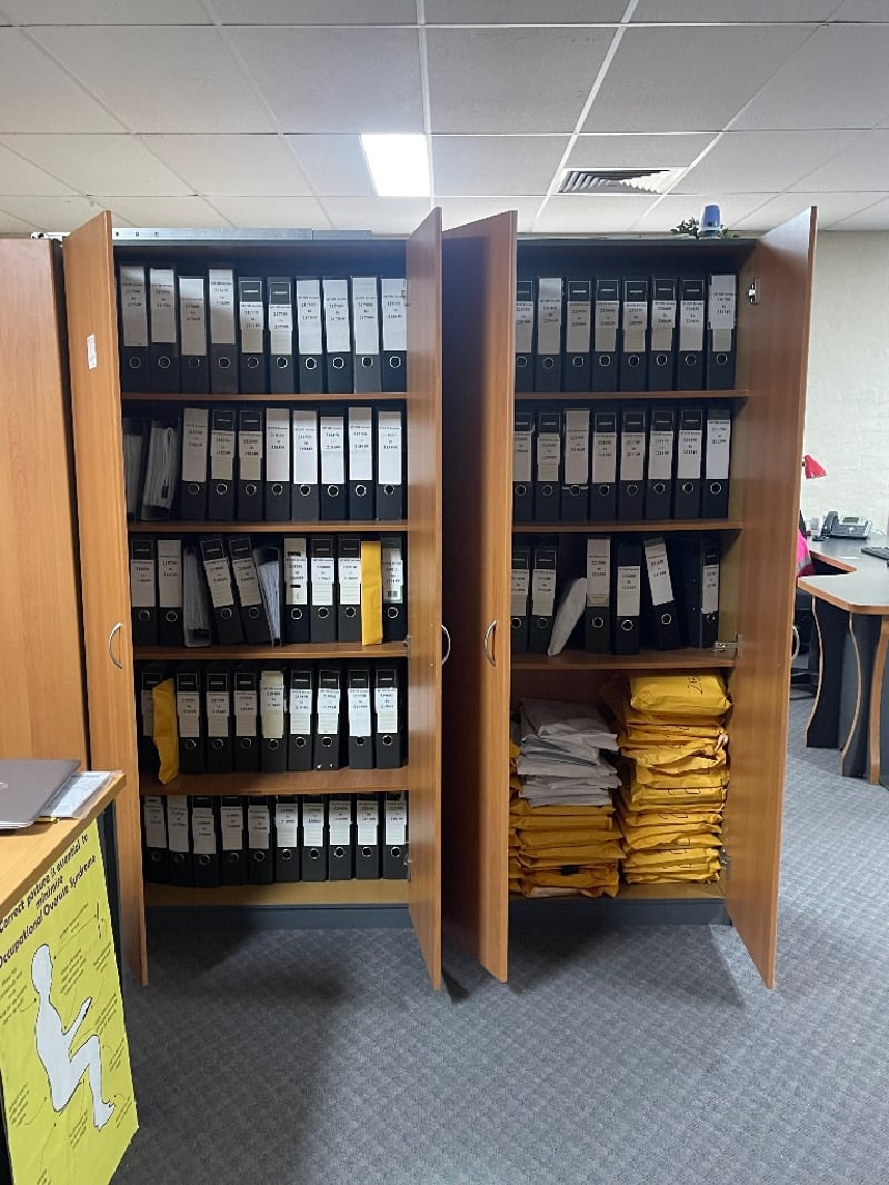 2x Timber finish filing cabinets.DIMENSIONS 90 x 190 x 45 CM