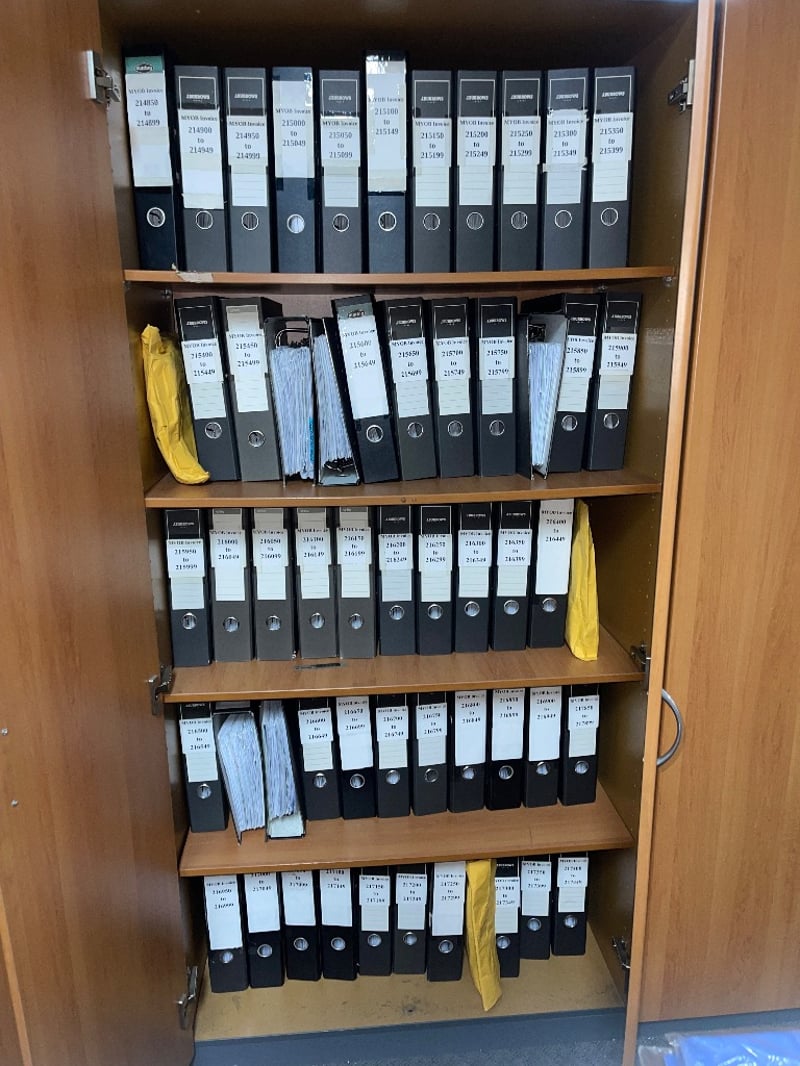 2x Timber finish Filing cabinets DIMENSIONS: 90 x 190 x 45 CM (Contents not included)