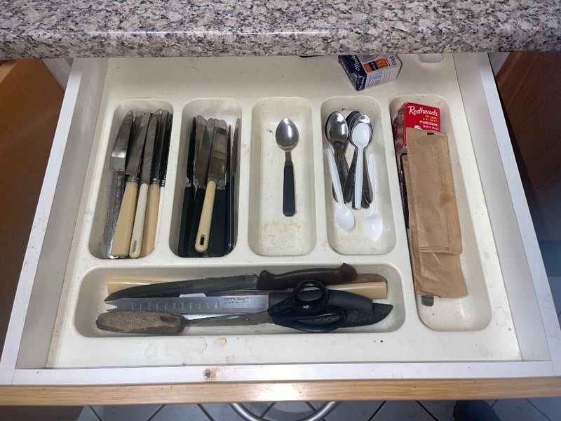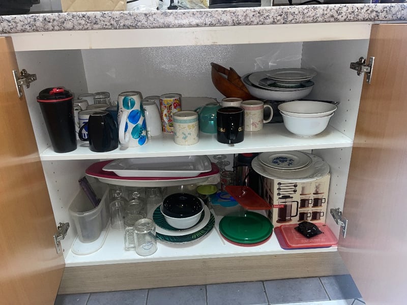 kitchen utensils / Cutlery lot Items include: mugs, cutlery, cleaning products & many more…REFER TO PHOTOS sold as lot