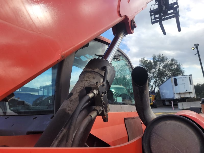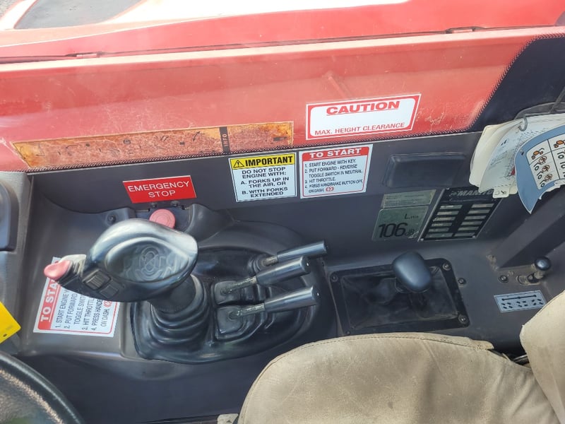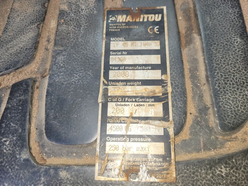 Serial No. 258082, unladen weight 10430, max train weight 26430 daN, Perkins engine, enclosed cab, out riggers, work lights, emergency stop, battery isolator switch Inspection recommended, marks dents scratches and wear, fork mast damaged/bent.