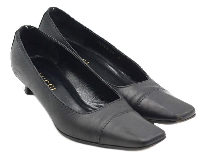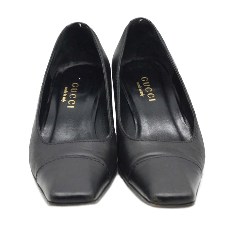 GUCCI BLACK LEATHER SQUARE TOE PUMPS SIZE 35