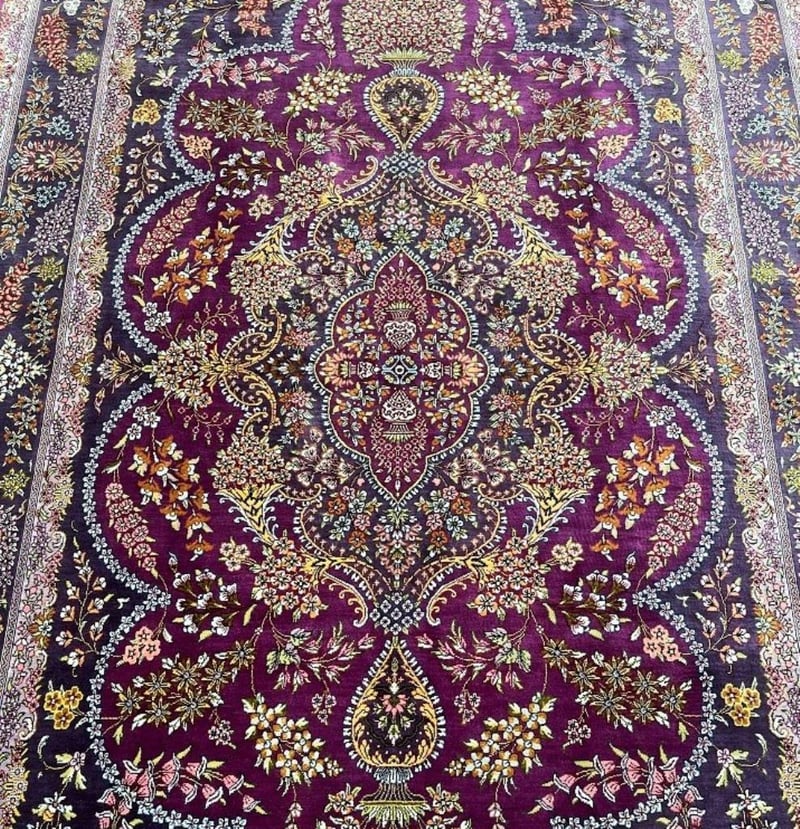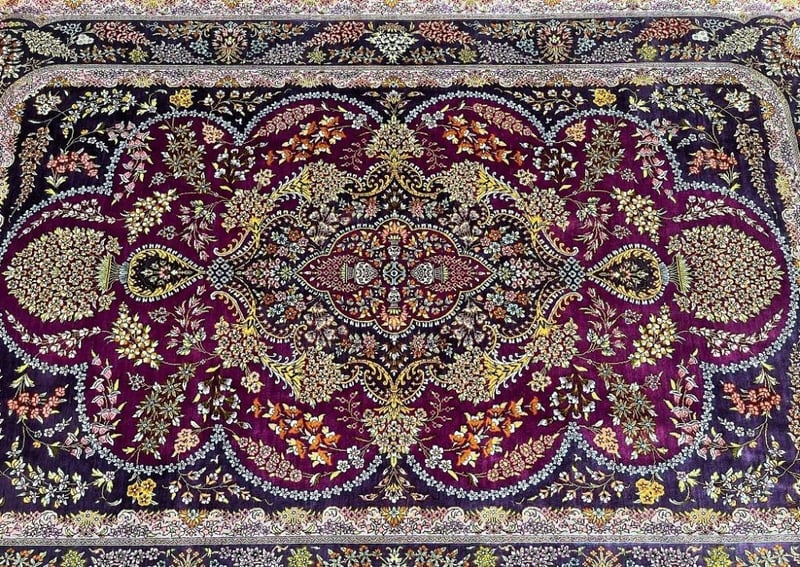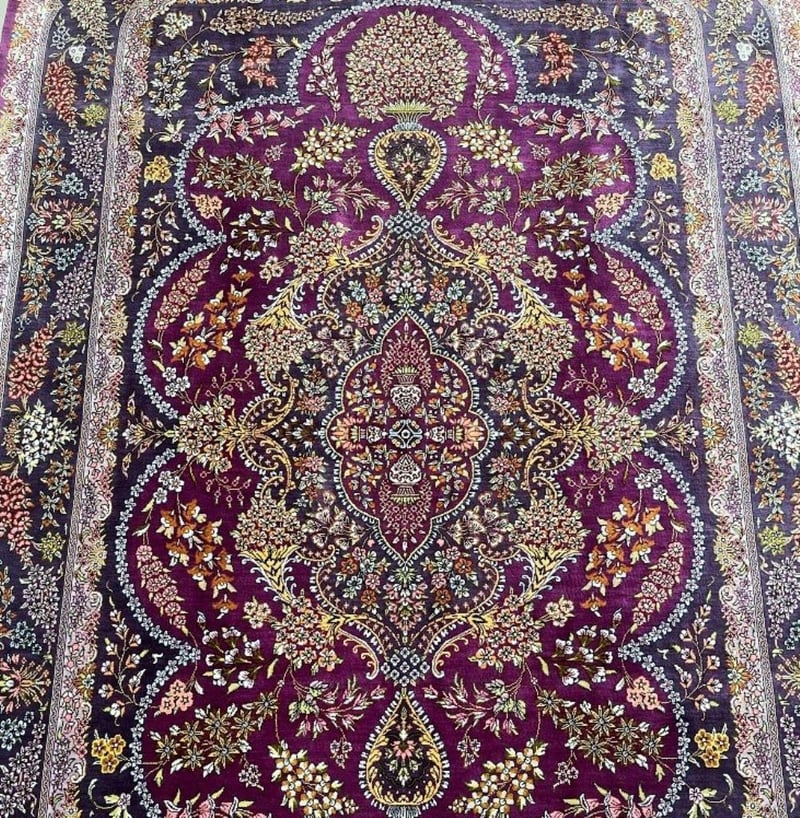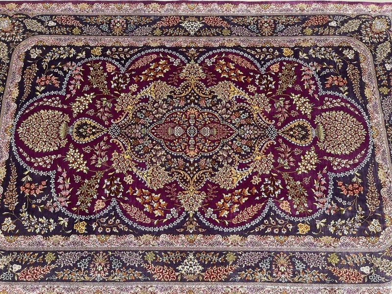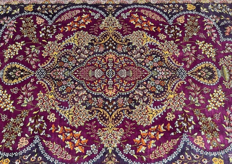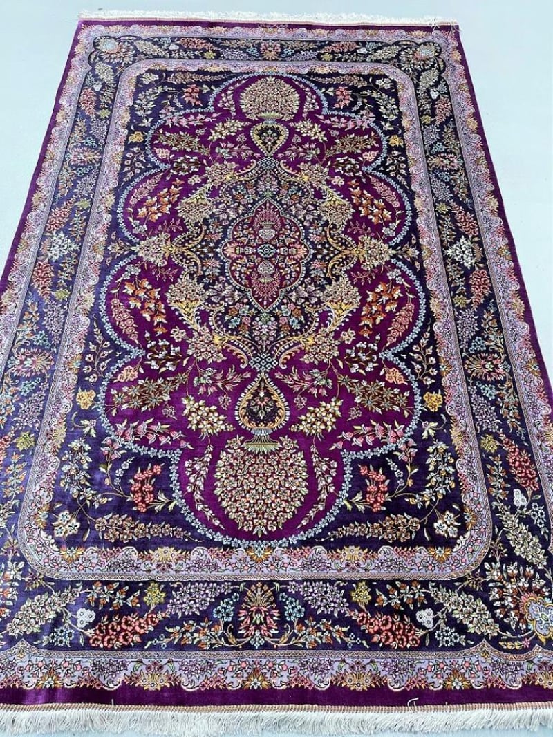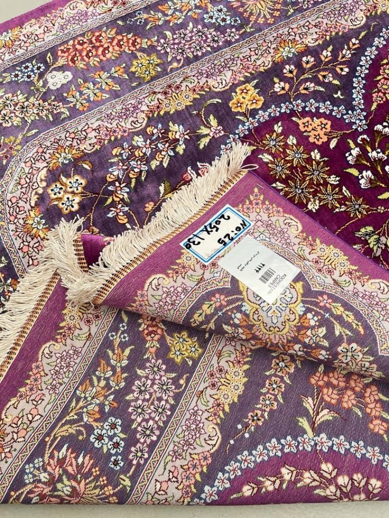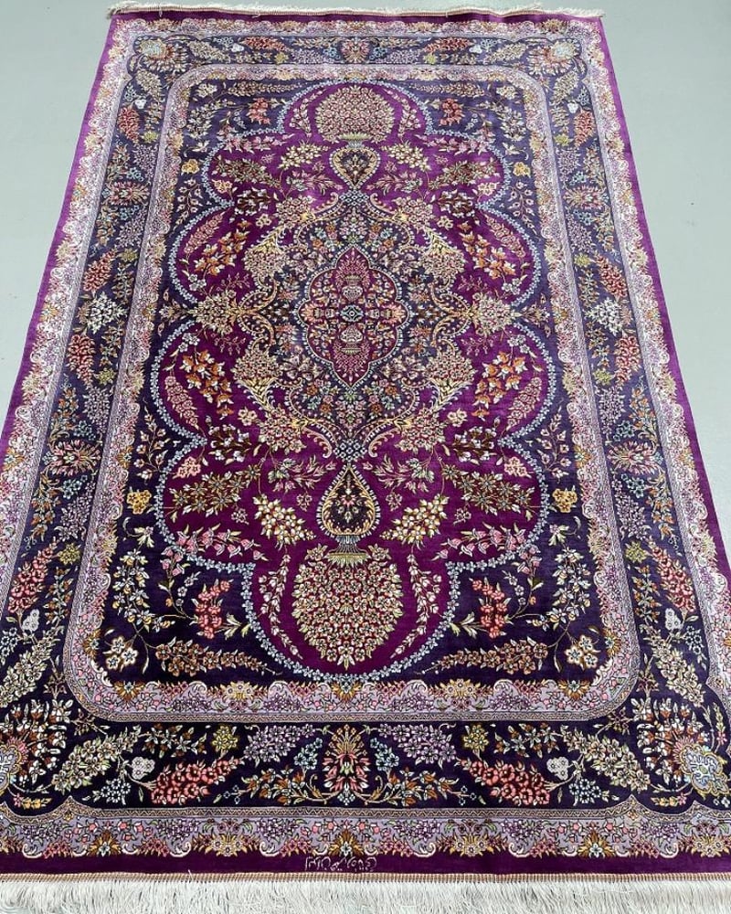 Masterpiece Pure Silk Hand Knotted Persian Qum Rug Signed 205X130Cm Central North Persia