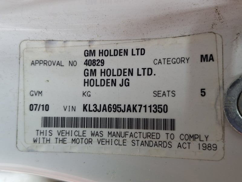 2010 Holden Cruze JG CDXYear: 2010Make: HoldenModel: CruzeSeries: JGBadge: CDX Body: 4-Door SedanDrive Type: Front wheel driveOdometer: Indicating 194,816 KilometersEngine: 1.8 I4 PetrolTransmission: AutomaticColour: WhiteSeats: 5Description/extras: Air Conditioning, Power windows, SRS, Tinted windows, Cruise control, Leather interior, Climate control, Alloy wheels, AUX / USB, Central locking, CD player, Log books/Owners manual. Multi Function Steering Wheel, Cup Holders Engine Light, Exterior Panel Scratches. VIN: KL3JA695JAK711350ENG No: F18D4078222KA AS PER PPSR(Key #B39 Carrara x2 keys)Lloyds stock #583703+1#PCV