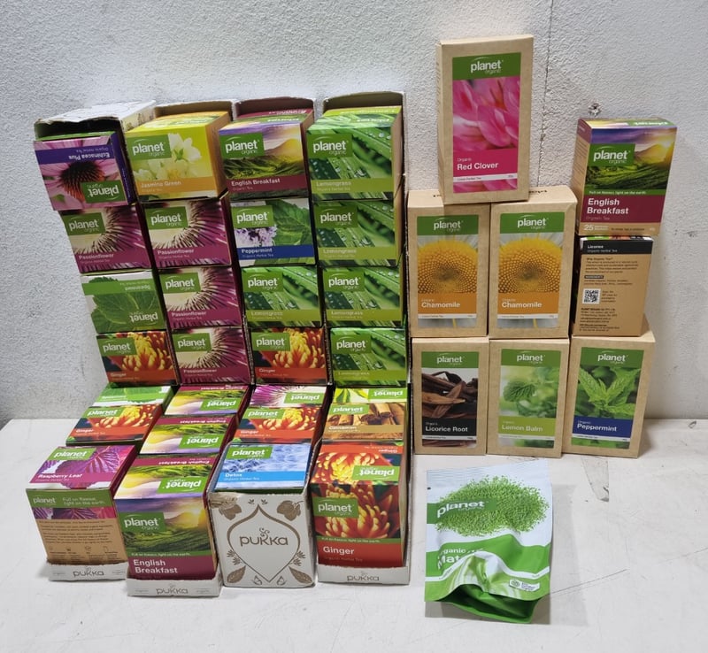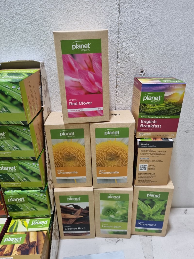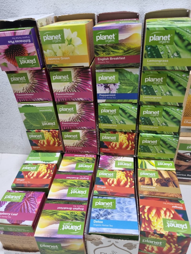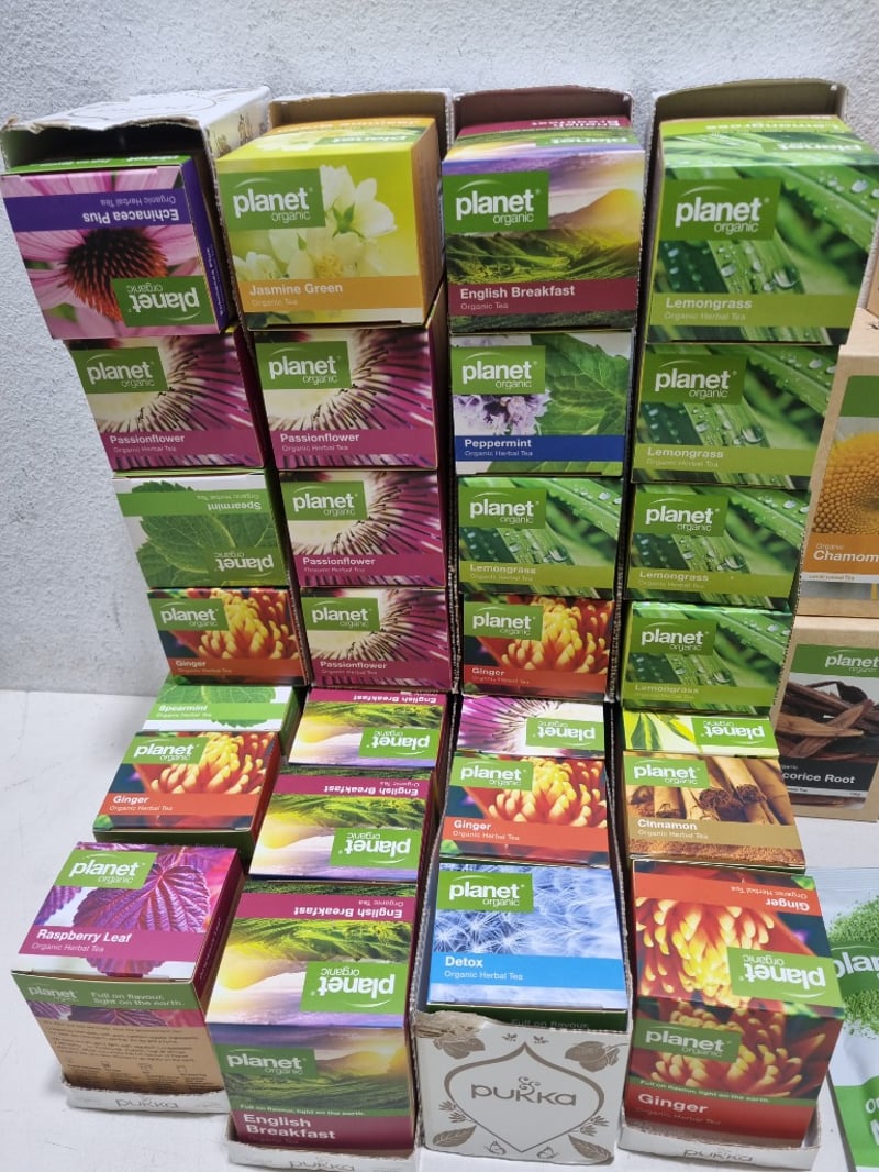 Assorted and health and wellness products, organic tea lot. Sold as lot
