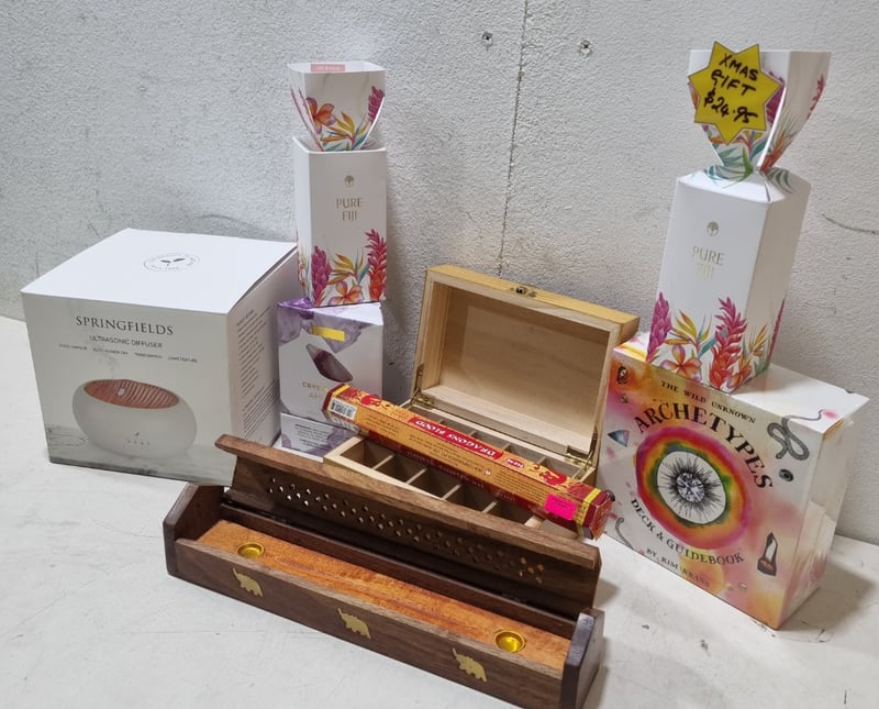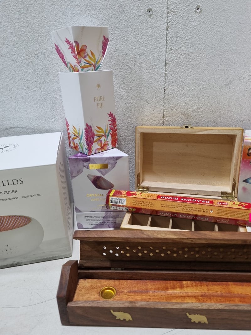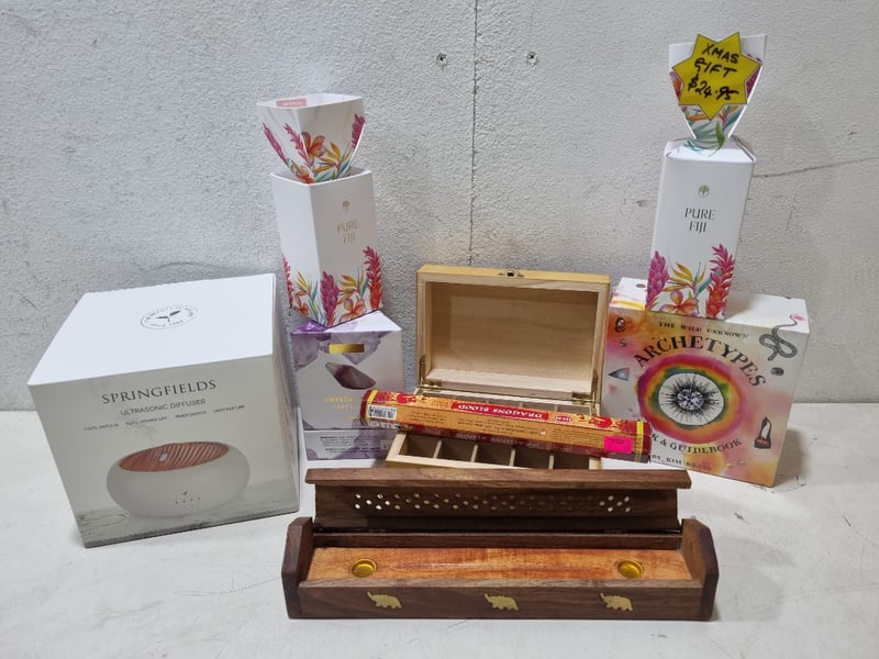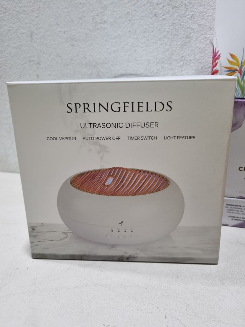 Assorted health and wellness products, includes Pure Fiji hydrating body lotion, Springfield's ultrasonic diffuser and more.....