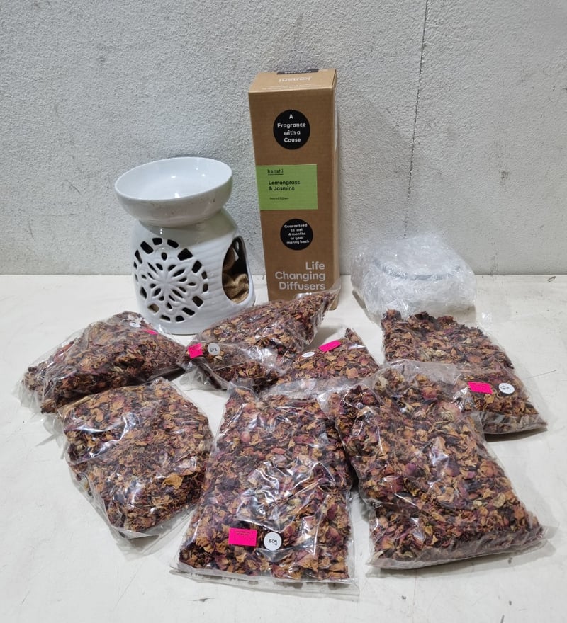 Assorted homeware lot, includes kenshi lemongrass and jasmine diffuser and more .... Sold as lot