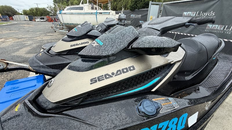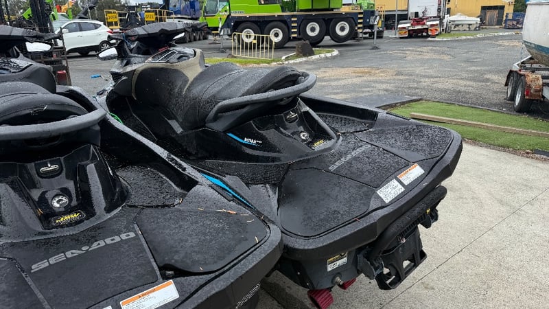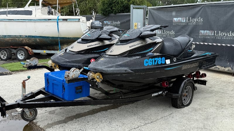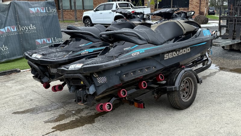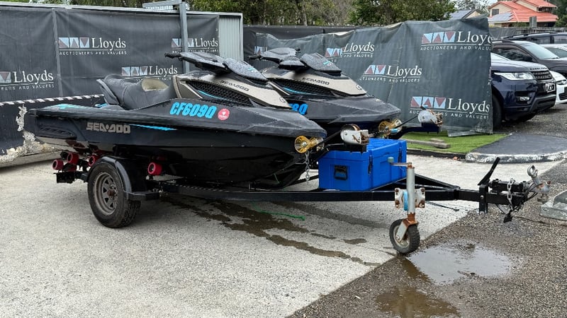 Total length on trailer: Not visible – approx 6.0 m (typical dual PWC trailer)