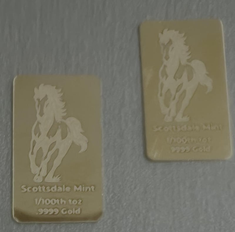 2 X SCOTTSDALE LION 1/100OZ 9999 GOLD BULLION BAR 311119+6