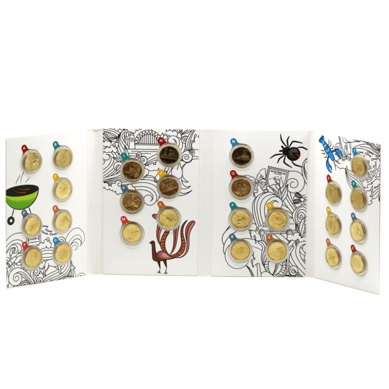 ROYAL AUSTRALIAN MINT - THE GREAT AUSSIE COIN HUNT. THE BOOK FEATURES 26 $1 COINS 2021, ALL ALPHABETICALLY MARKED WITH CORRESPONDING LETTERS, A-Z.