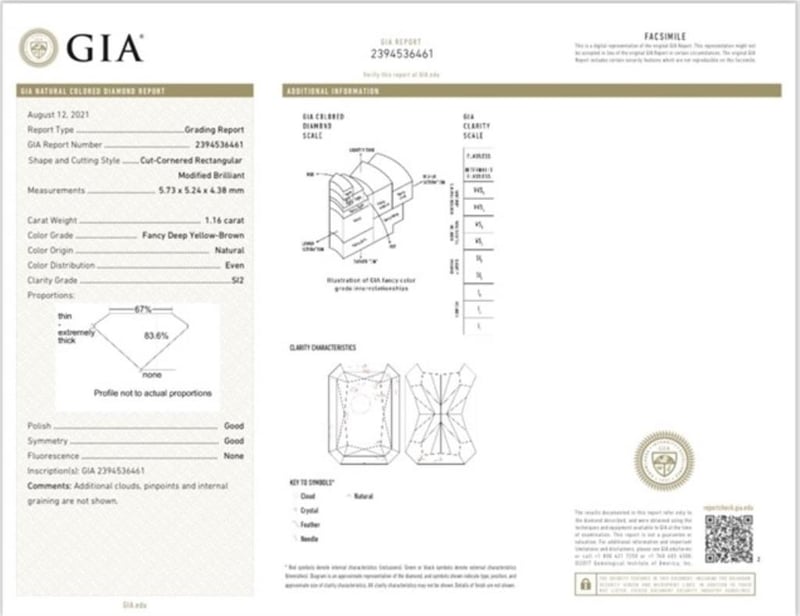 1.16 CARAT FANCY DEEP YELLOW BROWN RECTANGULAR GIA CERTIFIED DIAMOND--RARE