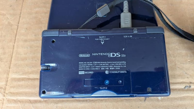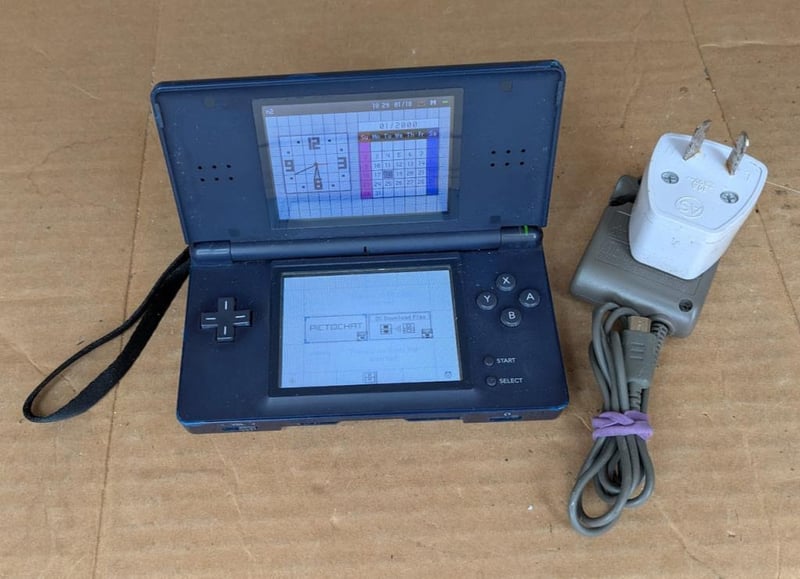 Nintendo DS lite video game console model USG-001 with charger adaptor