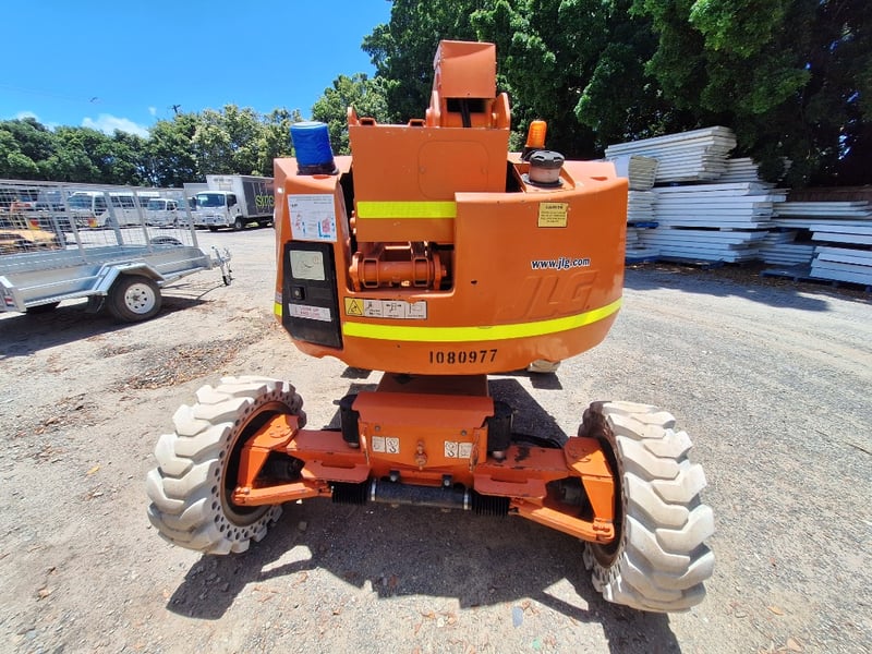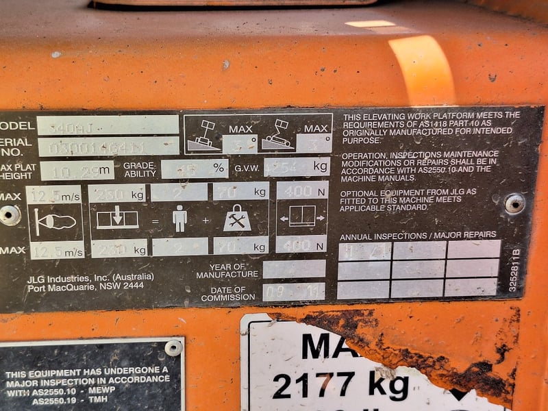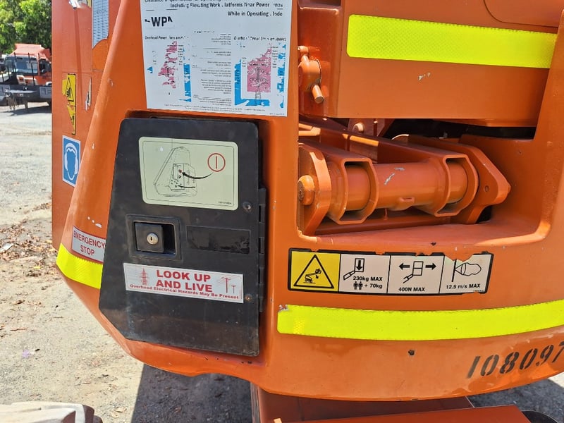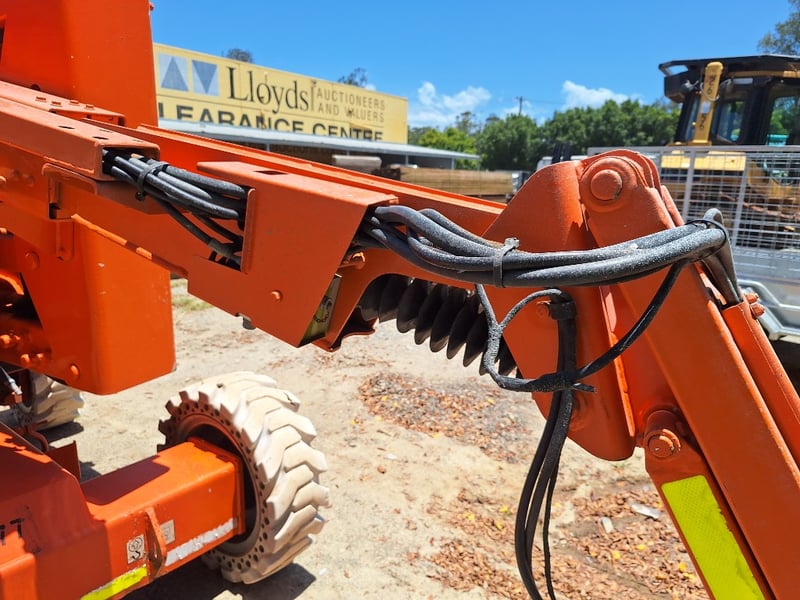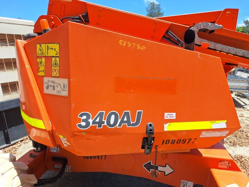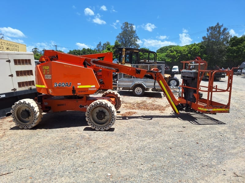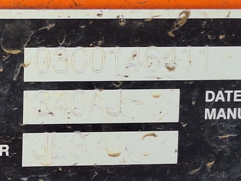 Knuckle Boom Lift 24ft Year: Unspecified Make: JLG Model: 340AJ Engine: Kubota ˜ 24.8 hp / 18.5 kW Model No: D1105-ET03 Hours Indicated: 2608hrs Description: -Does Not Run (Unknown Reason): -Maximum Platform Height: 10.33 m -Working Height: ~12.33 m -Horizontal Outreach (Max): 6.06 – 6.07 m -Up-and-Over Height / Clearance: ~5.17–5.18 m -Platform Capacity (Unrestricted): 227–230 kg -Platform Size: 0.76 m × 1.52 m -Jib: 1.22 m -Jib Articulation Range: 144° -Swing / Slew: 355° non-continuous slewing -Drive / Mobility: 4WD with oscillating axle, 45% gradeability -Drive Speed (stowed / travel): ~4.98 km/h Machine Dimensions: Width: ~1.93 m; Length: ~5.52 m; Stowed height ~2.0 m Machine Weight: ~4,400 kg Fuel & Hydraulics: Fuel tank ~49.2 L; Hydraulic reservoir ~77.9 L No Key Carrara Asset 1080977 SN: 0300146411 #CTM
