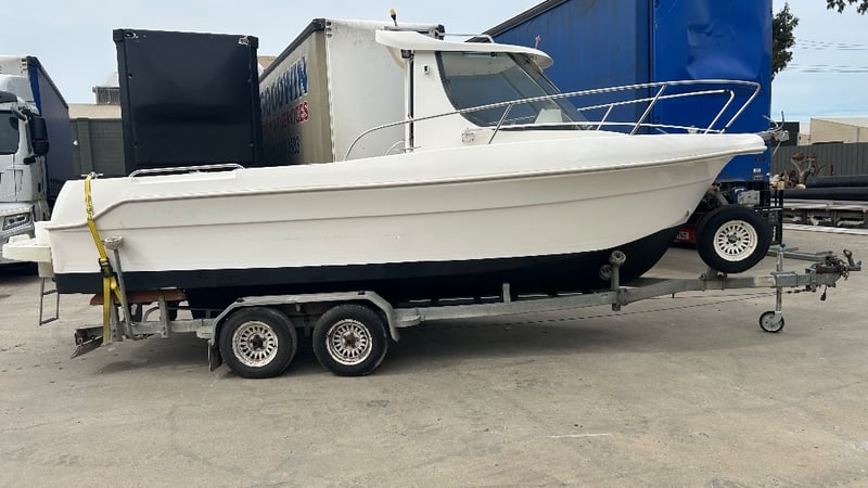 2001 Arvor 20 Cabin Cruiser On A TrailerYear: 2001Make: ArvorModel: 20 Cabin CruiserBody: Moderate V-Mono HullColour: WhiteEngine: 85 HP Nanni Diesel 5 Cylinder Turbo Diesel EngineEngine Model: 5 250TDIEngine no: F2503-T-Y-YL8170Engine Hours Indicating: Unknown Display Not Showing.HIN: AU-ARVKS042I101Description: Includes Key, No Books, Engine Turns Over, Simran Fish Finder/Navigation Unit, Solar Panel, Dual Battery, Uniden UM55 CV Radio, Aerial, Electronic Anchor Winch, Winch, Jockey Wheel, Trailer Adapter Plug, Spare Tyre.Damage: Oil Light Upon Starting Engine Present, Engine Turns Over But Does Not Start, Some Electronics Do Not Appear To Have Power, Housing For Lighting Loose, Minor Marks & Imperfections On Hull Refer To Images, Minor Rust Present On Trailer Refer To Images.ON A TRAILER:Year: 2001Make: Easy TowModel: AV02Body: SingleColour: GreyConfiguration: Dual AxelSuspension: Leaf SpringDescription: VIN: 6TDT22EZY1H004899ATM: 1995KGGTM: 1950KGTare: 500KGTotal length: Approximately 6 Meters.Key #N/A#MMR