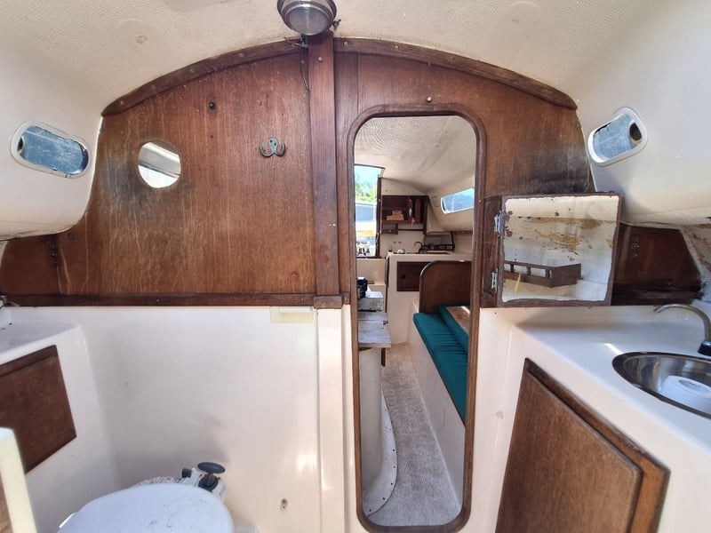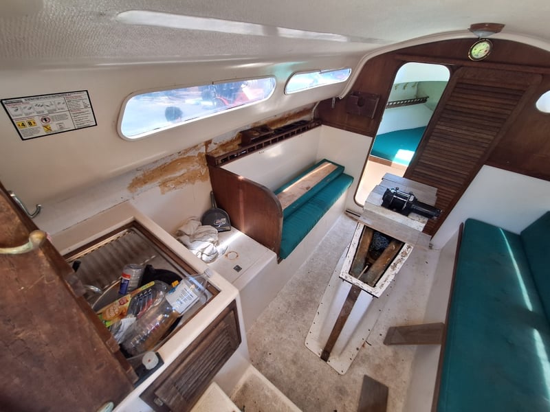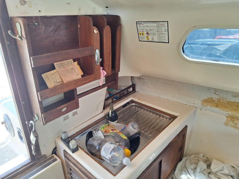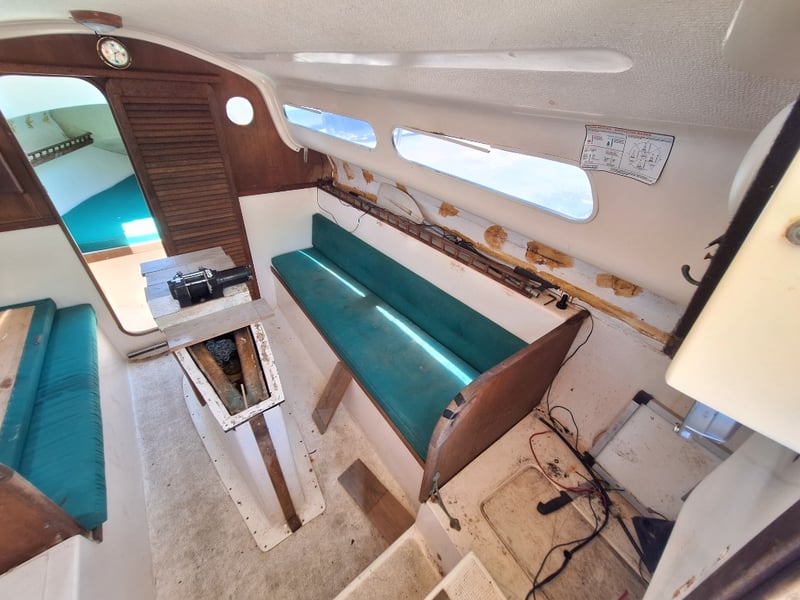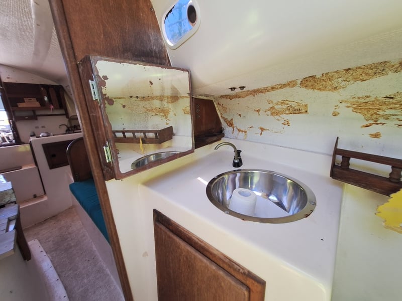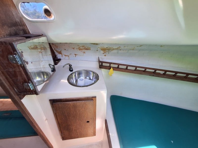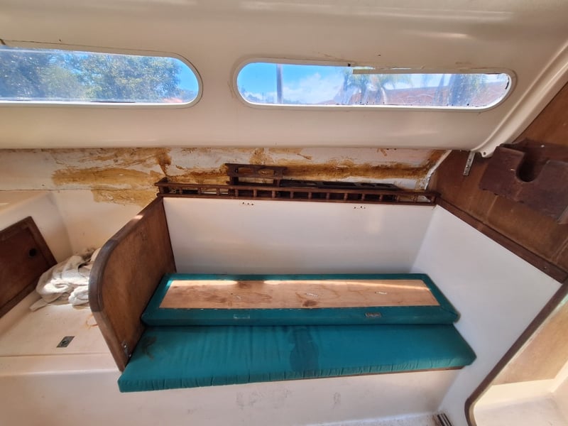 Description: Cabin Cruiser Featuring, Outboard Engine Runs But Steering Does Not Work, Anchor With Chain & Rope, Throttle Controller (Does Not Move Out Of Neutral, Inspection Recommended), Sink, Lounge Area, Sleeping Quarters, Switch Control Panel, Isolator For Battery, Storage Units, Toilet, Outboard With Marine Growth Damage