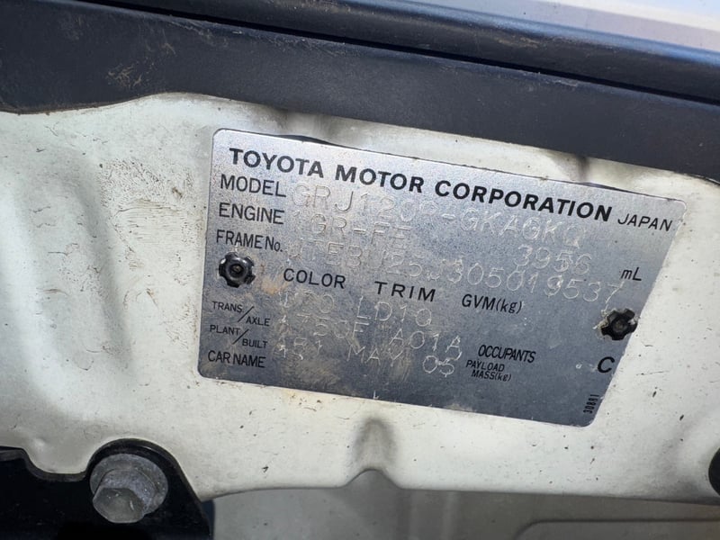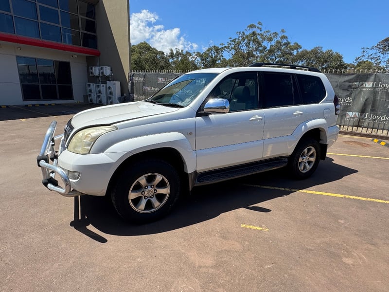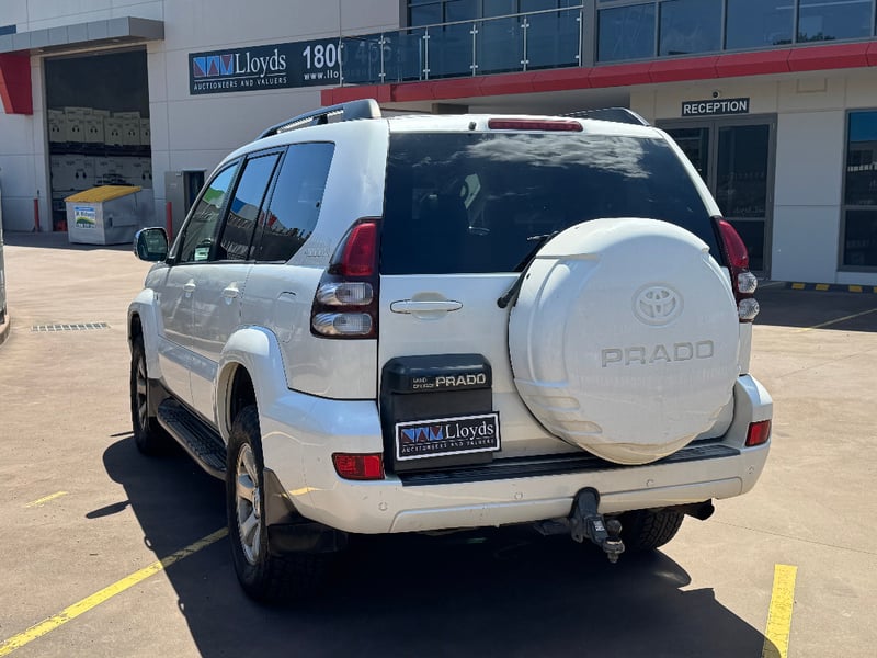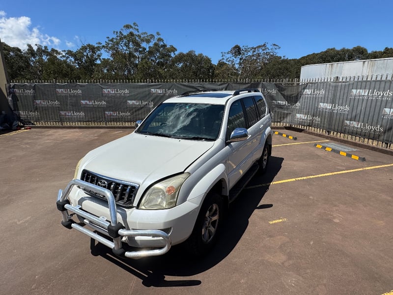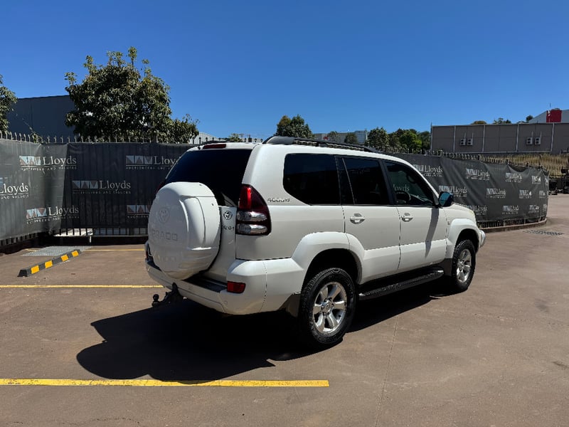 2005 Toyota Prado GRJ120R GrandeYear: 2005Make: ToyotaModel: PradoSeries: GRJ120RBadge: Grande Body: 5-Door SUVDrive Type: 4x4Odometer: Indicating 426,489kmEngine: 4.0 PetrolTransmission: AutomaticColour: WhiteSeats: 7Description/extras: Air Conditioning, Power windows, Sunroof, Towbar, Bullbar, Central locking. Some oil leaks but appears to run well, Alloy wheels. Does have some dash warning lights on. Please refer to images.#Sommersby Branch. Minor scuffs and dents but overall body appears tidy for its ages and kms. VIN: JTEBU25J305019537ENG No: 1GR5119631 (as per PPSR)(Key # NSW)Lloyds stock #237967+1