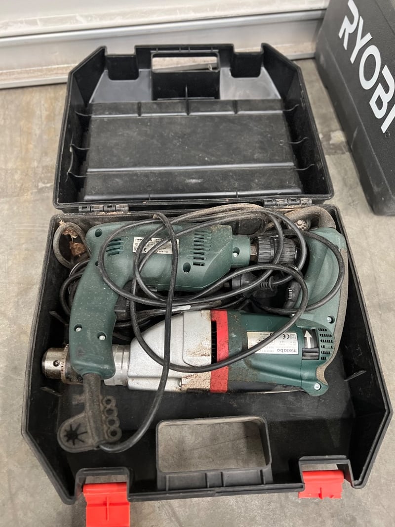 Power tools, brands include; wallpro, Ryobi, metabo. Includes; screwgun, sheet sander ect Sold as lot