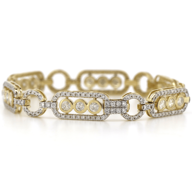 114K YELLOW GOLD AND DIAMOND, DECORATIVE BRACELET.