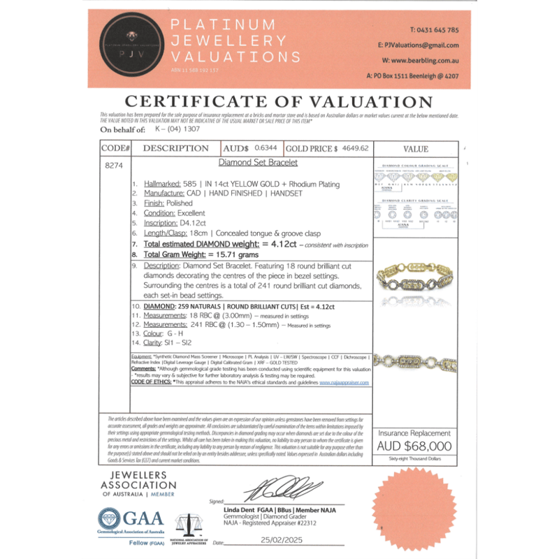 The Design Features, 259 Round Brilliant Cut, Diamonds (4.12Ct Tdw, G-H Colour, Si1-Si2 Clarity), Bead Set. The Bracelet Features A Box Clasp With A Safety Latch. Bracelet Length Is 18Cm.