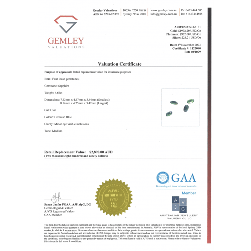 This Insurance Valuation has been provided by a registered Jewellery Valuer and is intended for insurance purposes only. The valuation amount has no bearing on the auction value of the item. Any questions regarding the valuation should be directed to the issuing Valuer (refer to contact details on the certificate) as Lloyds have no association or relationship with the Valuer or the valuation amount contained within the valuation.