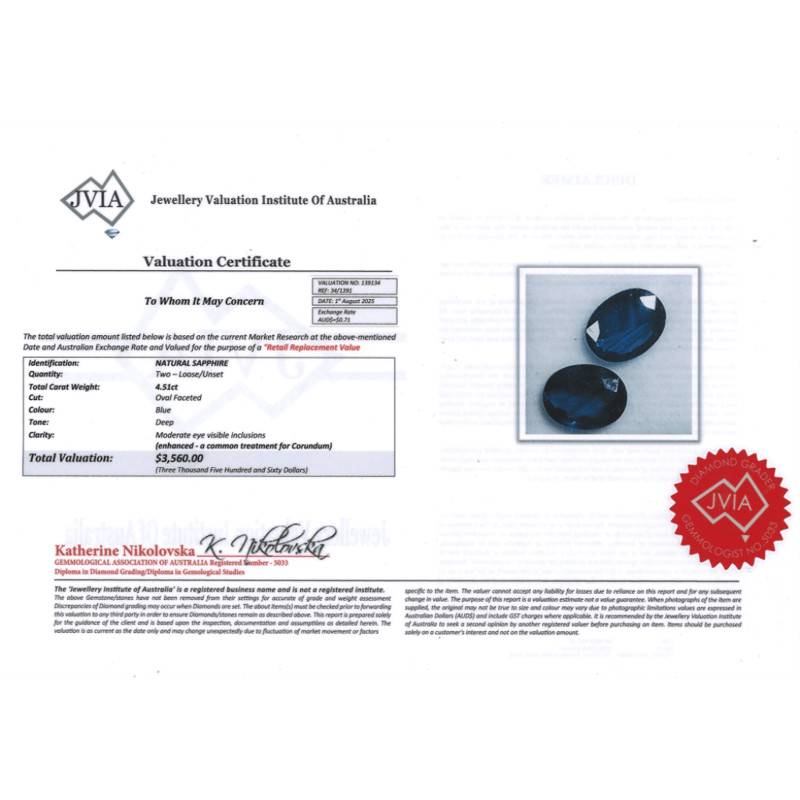This Insurance Valuation has been provided by a registered Jewellery Valuer and is intended for insurance purposes only. The valuation amount has no bearing on the auction value of the item. Any questions regarding the valuation should be directed to the issuing Valuer (refer to contact details on the certificate) as Lloyds have no association or relationship with the Valuer or the valuation amount contained within the valuation.
