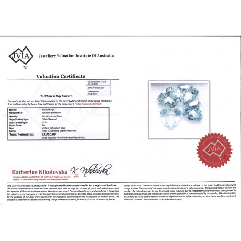 This Insurance Valuation has been provided by a registered Jewellery Valuer and is intended for insurance purposes only. The valuation amount has no bearing on the auction value of the item. Any questions regarding the valuation should be directed to the issuing Valuer (refer to contact details on the certificate) as Lloyds have no association or relationship with the Valuer or the valuation amount contained within the valuation.