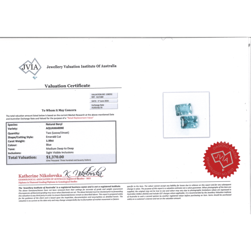 1.99CT TSW X 2, NATURAL BERYL AQUAMARINES
