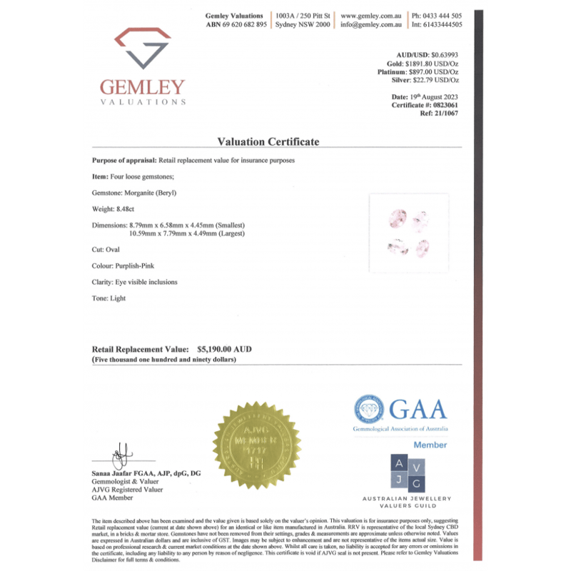 This Insurance Valuation has been provided by a registered Jewellery Valuer and is intended for insurance purposes only. The valuation amount has no bearing on the auction value of the item. Any questions regarding the valuation should be directed to the issuing Valuer (refer to contact details on the certificate) as Lloyds have no association or relationship with the Valuer or the valuation amount contained within the valuation.