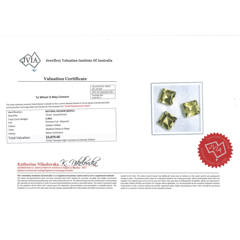 5.99CT TSW X 3, NATURAL BERYL HELIODOR