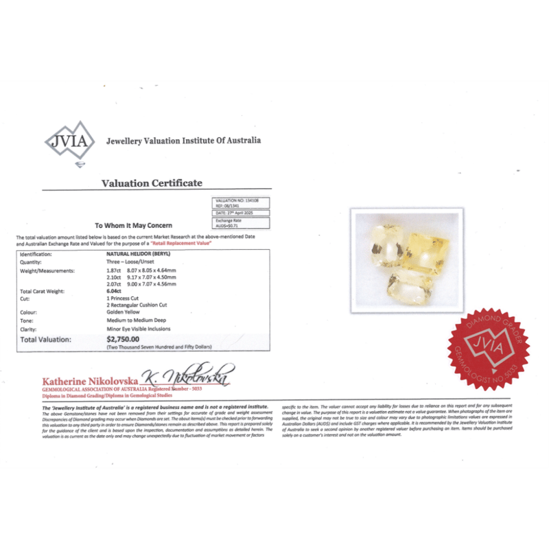 6.04CT TSW X 3, NATURAL BERYL HELIODOR