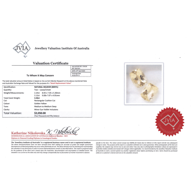 4.36CT TSW X 2, NATURAL BERYL HELIODORS