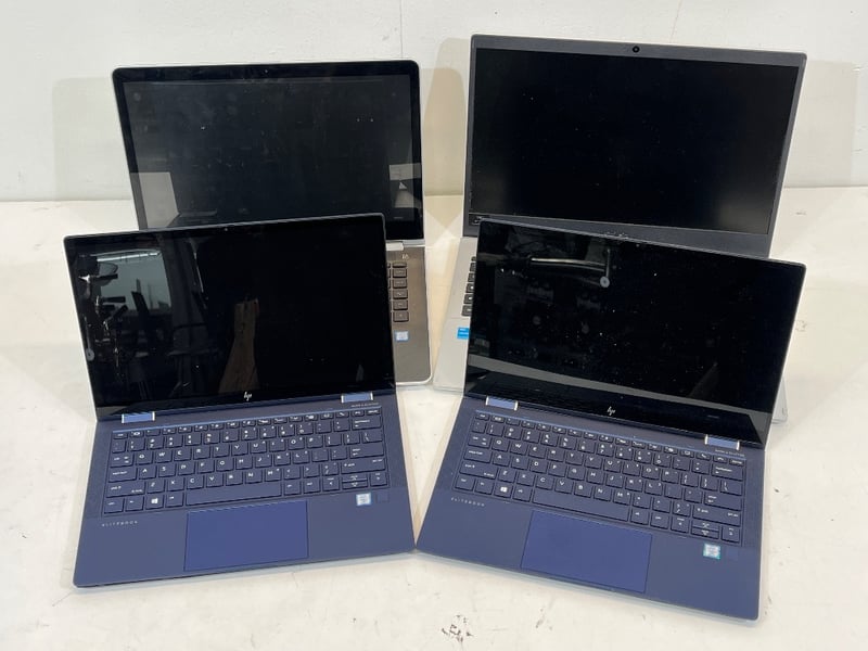 Laptops, includes two HP elitebooks, Asus Chromebook & HP pavilion, no chargers included, untested, sold as is
