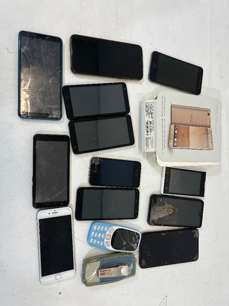 Mobile phones, includes iPhone, Samsung and HP, no chargers included, untested, sold as is