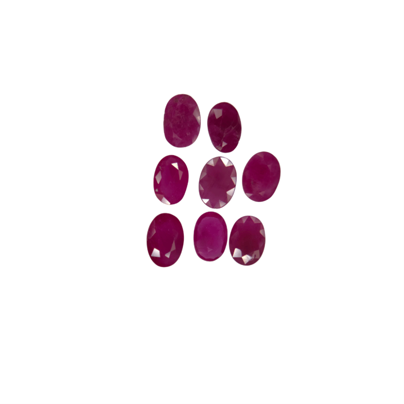 A Beautifully Matched Parcel Of Natural Rubies Displaying A Vivid Pinkish-Red Hue With Exceptional Brilliance And Uniform Saturation. These Stones Are Well-Cut In Classic Ovals, Showing Bright Reflections And The Timeless Character Of Fine Corundum.