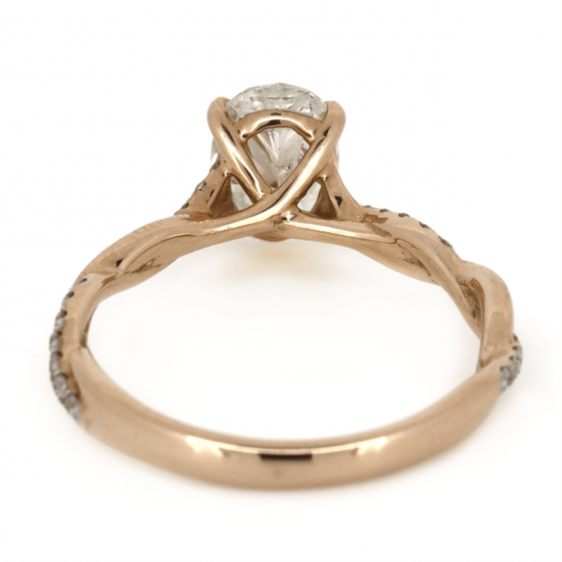 14K ROSE GOLD AND DIAMOND, TWIST BAND RING. The Centre Features, One Oval Brilliant Cut, Diamond (1.10Ct, H-I Colour, P2 Clarity), 4 Claw Set. Decorating The Twist Band Are, 28 Round Brilliant Cut, Diamonds (0.17Ct Tdw, H-J Colour, P2 Clarity), Bead Set. Ring Size M. 14K Rose Gold And Diamond, Twist Band Ring. The Centre Features, One Oval Brilliant Cut, Diamond (1.10Ct, H-I Colour, P2 Clarity), 4 Claw Set. Decorating The Twist Band Are, 28 Round Brilliant Cut, Diamonds (0.17Ct Tdw, H-J Colour, P2 Clarity), Bead Set. Ring Size M. Jewellery Valuations Provided By A Third Party Professional Not Directly Associated With Lloyds Auctions at AUD $12,000.00 This Insurance Valuation has been provided by a registered Jewellery Valuer and is intended for insurance purposes only. The valuation amount has no bearing on the auction value of the item. Any questions regarding the valuation should be directed to the issuing Valuer (refer to contact details on the certificate) as Lloyds have no association or relationship with the Valuer or the valuation amount contained within the valuation. Condition: NEW 0 584876+1401