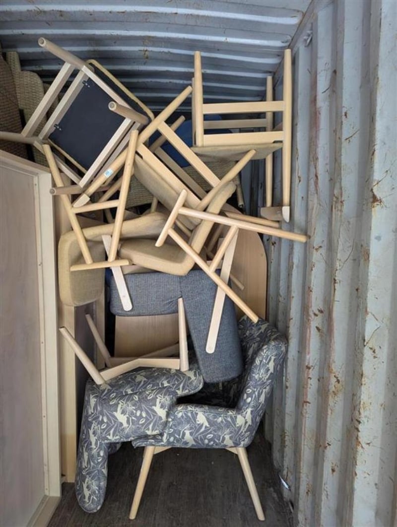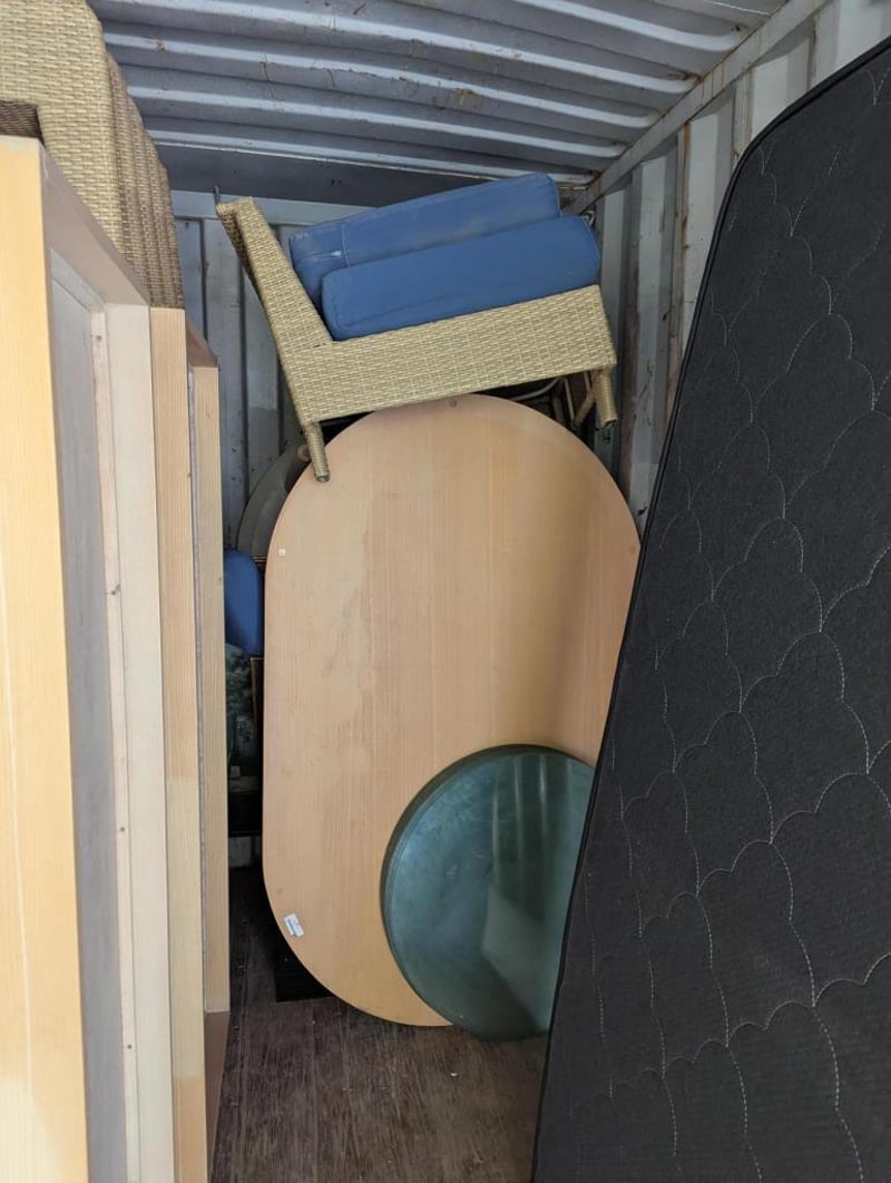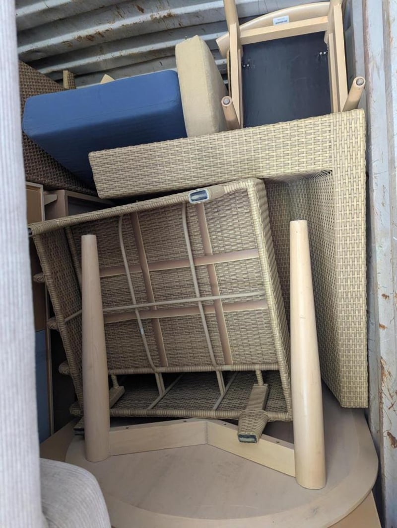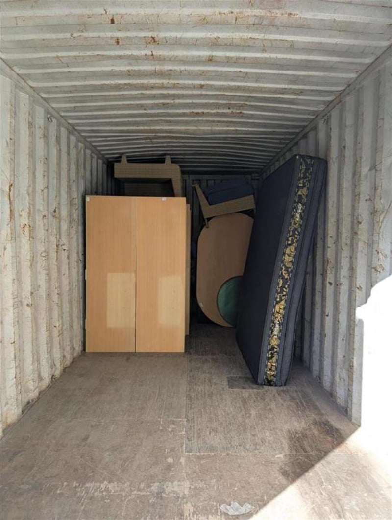 20ft container of assorted goods including Tables, chairs, buffets, mattress and more NOTE: MUST TAKE ALL, CONTAINER NOT INCLUDED SOLD AS LOT