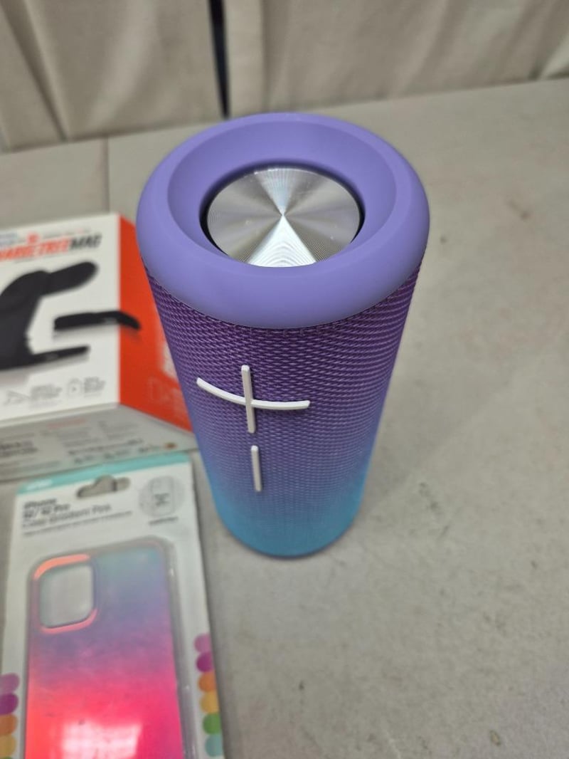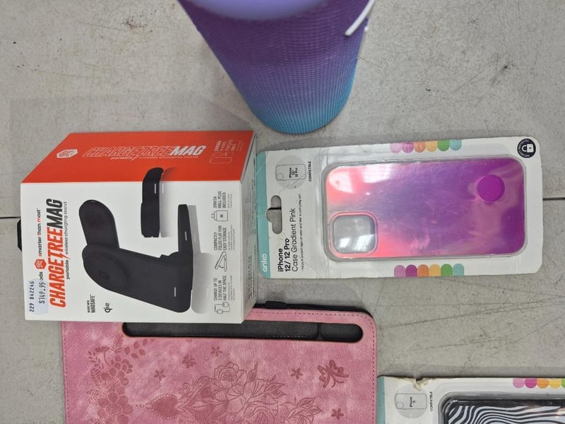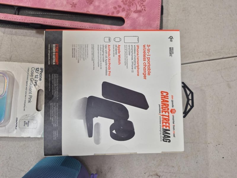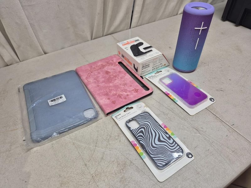1 x CHARGETREEMAG, portable wireless charging stand, works with magsafe, RRP$149.95, NEW factory sealed in box, 1 x ANKO bluetooth pro speaker, Model:42976608, 2 x protective cases for tablets, 2 x iphone cases, , NEW factory sealed in pack