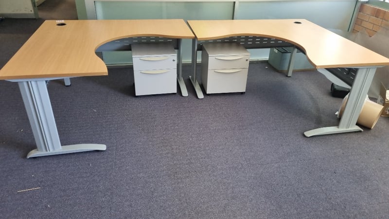 Corner Office Desks and 2 drawer unitsQty 2x desks 2x DrawersDesk Dimensions 72cmH x 150cmW x 150cmDSold as Lot